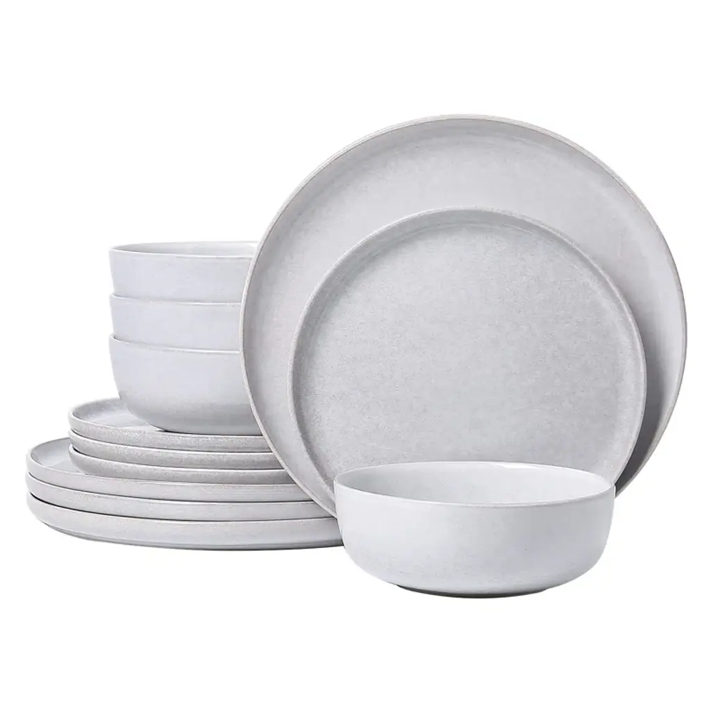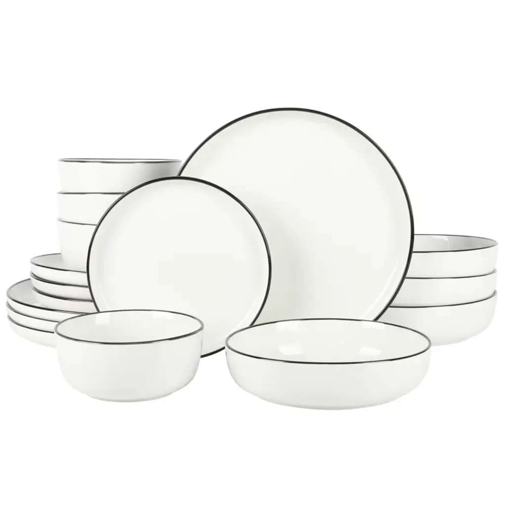 Make a loud statement with your dishes. The 32 Piece Stoneware Round Dinnerware set is unforgettable. The perfect balance between trendy cool and modern classicism, these round plates, bowls turn every table into a hip party. These home essentials are expertly crafted, artfully designed, and reminiscent of celebrity after-parties. 100% dishwasher and microwave safe for easy cleaning and durability. These pieces go great in a kitchen, dining or outdoor setting. Lay out your most stylish tablecloth, cutlery and stemware, and let the 32-piece stoneware dishes set do the rest.
