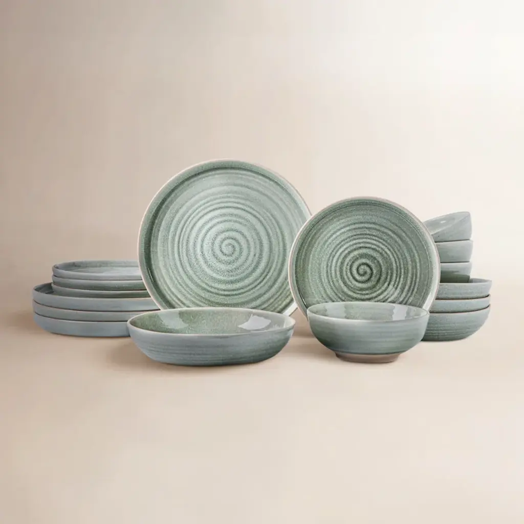 Set the table with Dua, Stone Lain's stoneware dinnerware collection, and be sure to make a statement. Dua's unique round pieces feature a distinct circular interior patterning complete with a glossy finish, while the exterior is a chic matte texture. What's more? This collection is both microwave- and dishwasher-safe making it impressive in both design and functionality. This set includes 4 dinner plates, 4 salad plates, and 4 bowls.