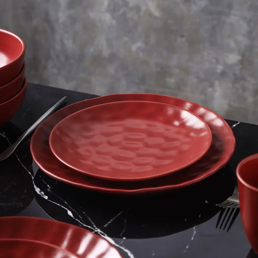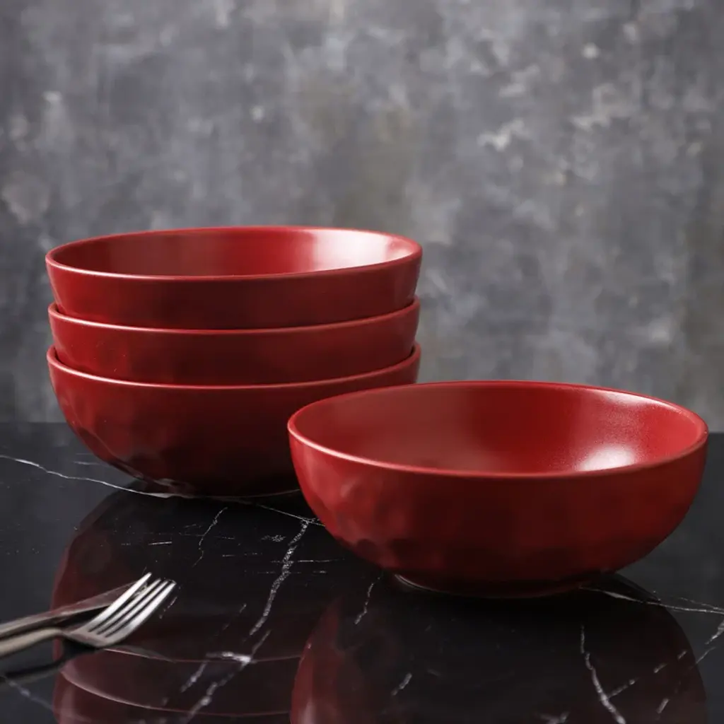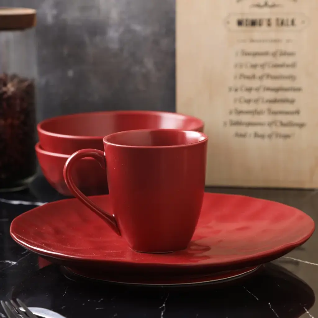 Spice up your next dinner party with the stone + lain sam dinnerware set. Crafted from fine red porcelain, sam features a unique textured look that adds interest to any dining table. These dishes were designed to fit any décor, especially rustic or farmhouse, and will be sure to make a statement. Sam includes everything you need for everyday dining with 4 dinner plates, 4 salad plates, 4 bowls, and 4 mugs.