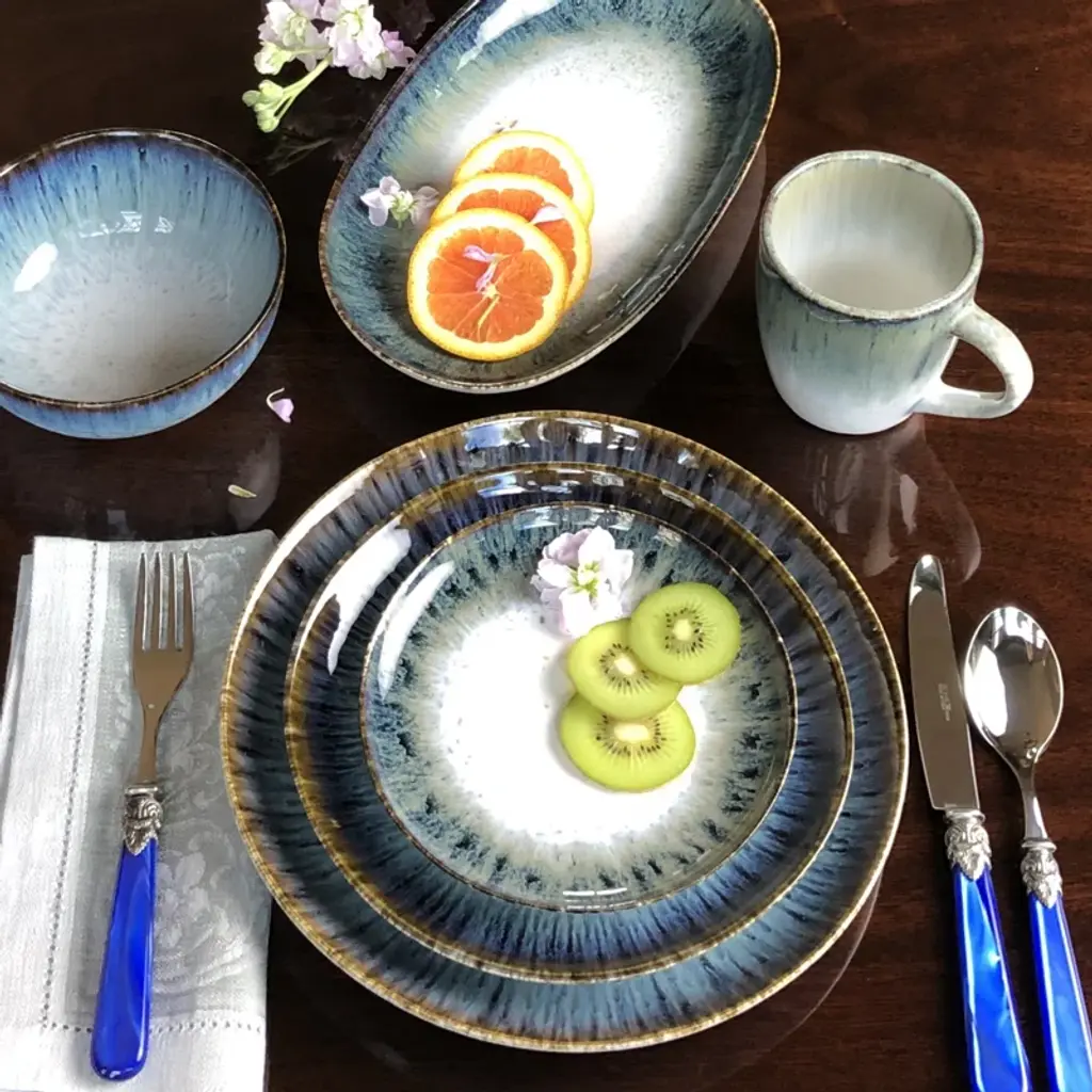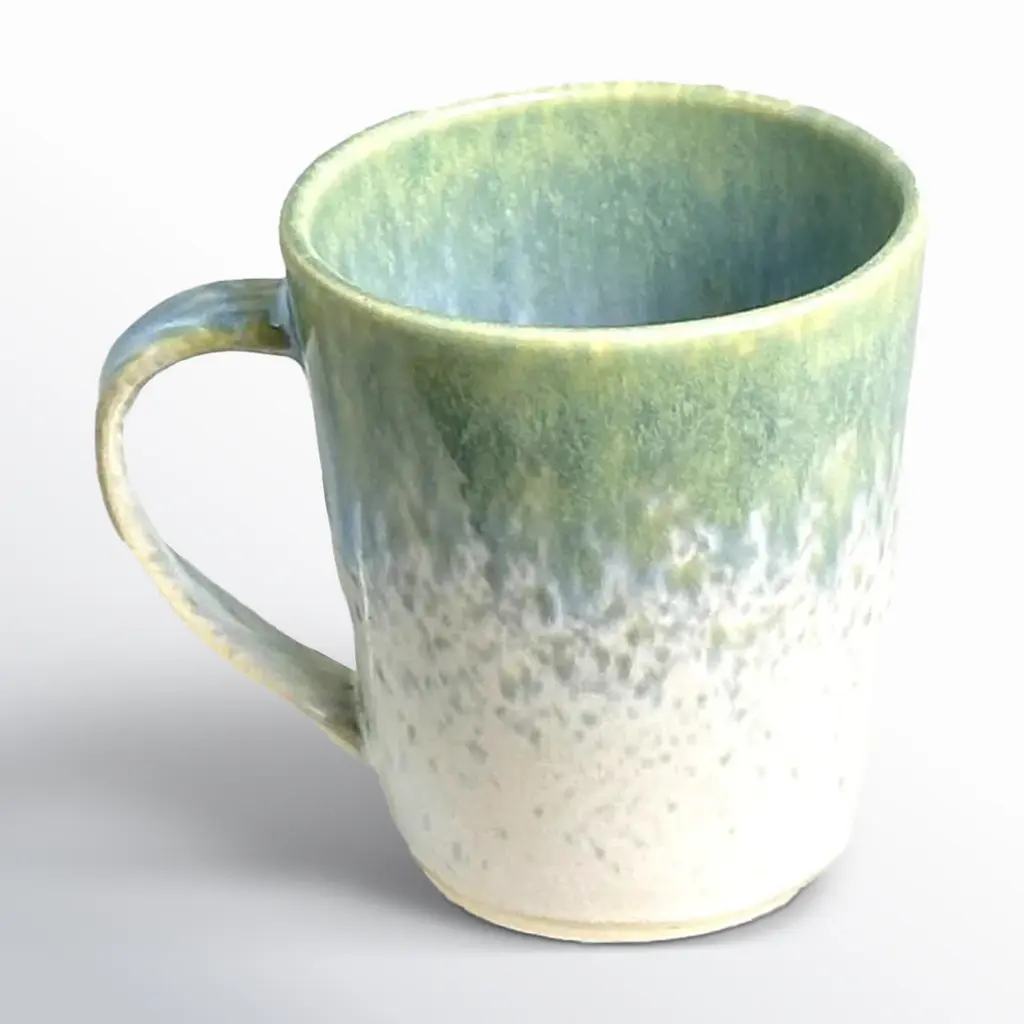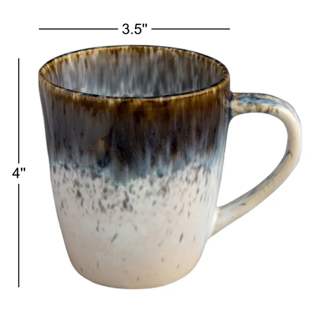Whether you're enjoying your morning coffee or enjoying an afternoon cup of tea, a mug like this is a great option for taking your favorite hot beverage with a striking look. Crafted from stoneware, this piece features a striking glaze that's white at the bottom with a blue and brown rim. And since it's microwave safe, keeping your drinks warm is a breeze. This mug is also dishwasher safe, so keeping it clean is as easy as a quick cycle. Individually sold.