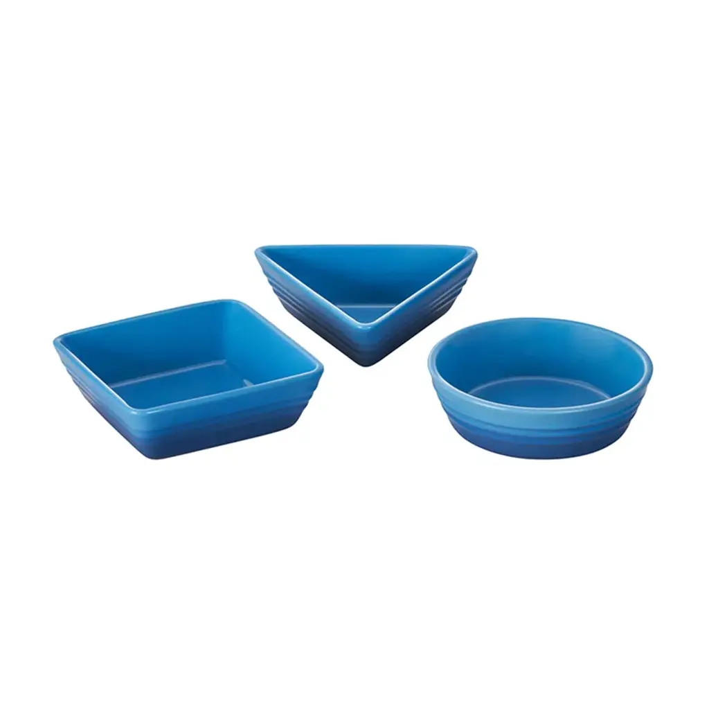 The set of 3 tapas dishes is perfectly sized for serving hot and cold appetizers, as well as dips, desserts, jams, nuts, and candies. They’re also versatile for prepping and storing ingredients as you cook or use them as a catch-all or ring holder in the kitchen. Crafted from premium stoneware, the dishes easily transition from oven or fridge to table and are finished with a vibrant glaze that is virtually nonstick for easy cleanup.