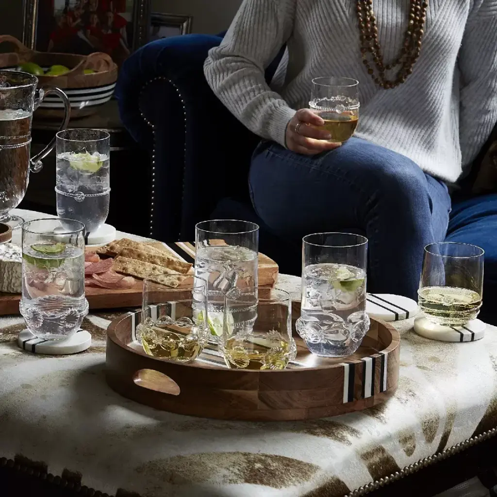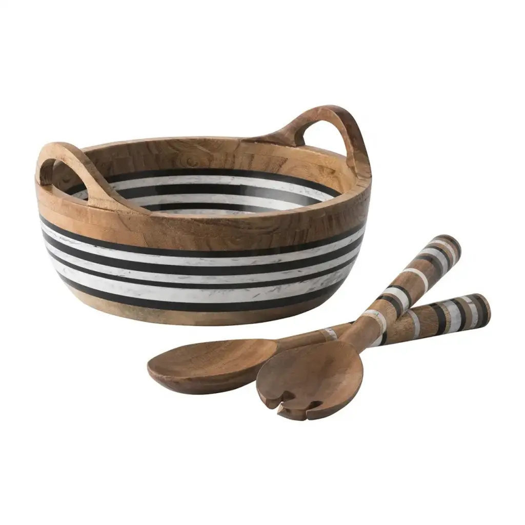 From our Stonewood Stripe Collection - Our salad server set pairs perfectly with our round serving bowl. Between layers of rich Acacia Wood are stripes of hand-marbled resin -a juxtaposition of rustic and refined artisanal materials. Each piece is shaped by hand and crafted into unique entertaining pieces. Based in Connecticut, Juliska is committed to bringing elegant European design into our modern homes. Since its founding in 2001, when David and Capucine Gooding began by working with artisans outside of Prague to reproduce antique Bohemian glass pieces, every piece from Juliska has shared a rich heritage spanning six centuries of European design. Juliska's creations are timeless, romantic and effortlessly chic.