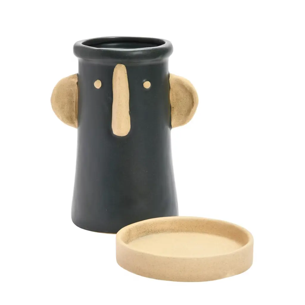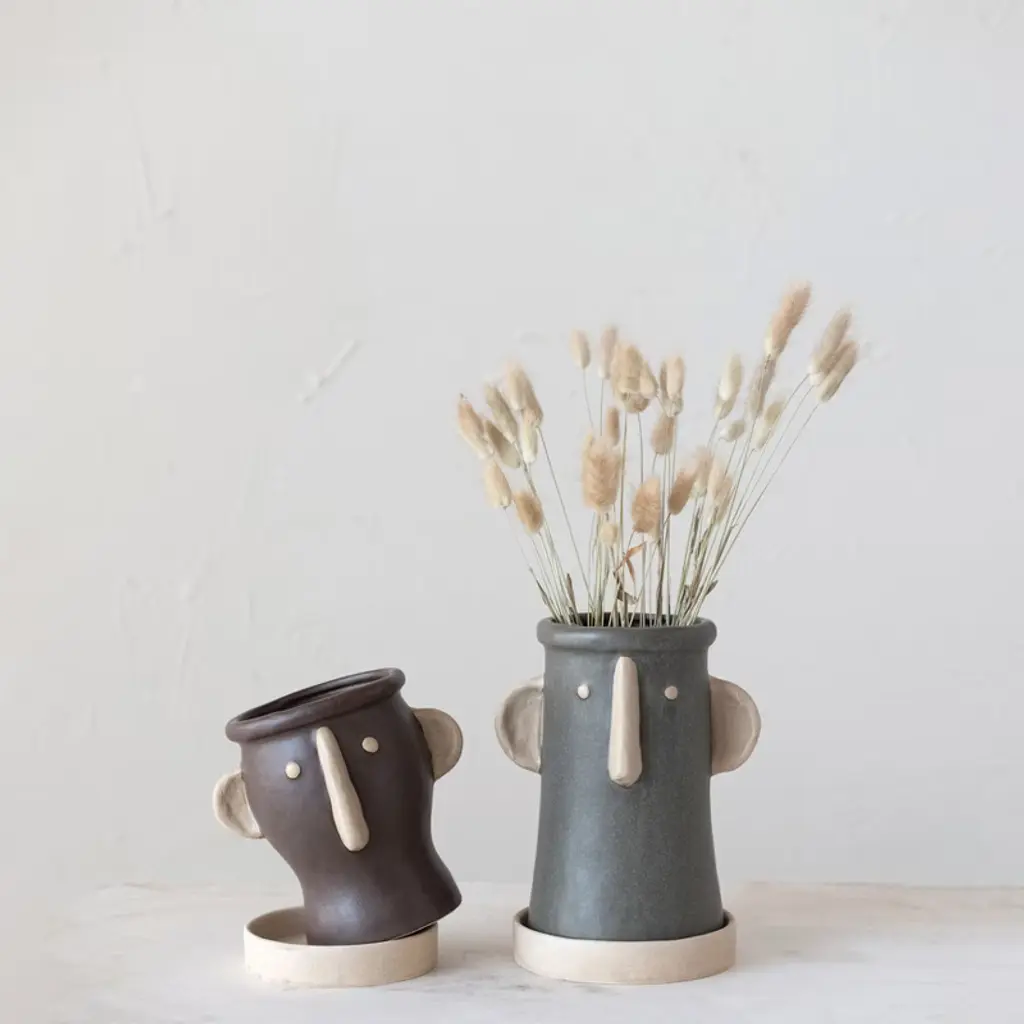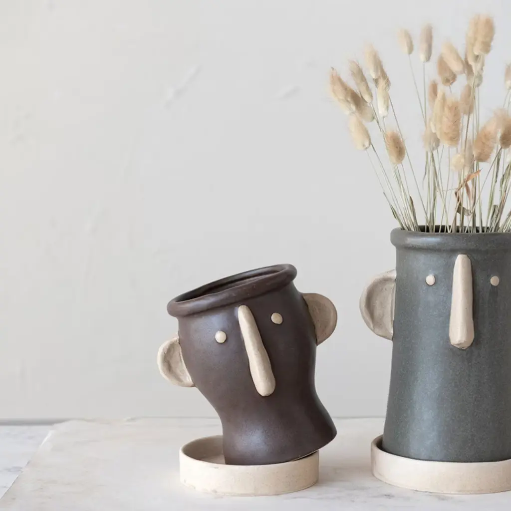 This playful stoneware planter showcases a minimalist 2 tone face in a stylish matte finish; 100% Stoneware; 6" L x 6" W x 9.25" H