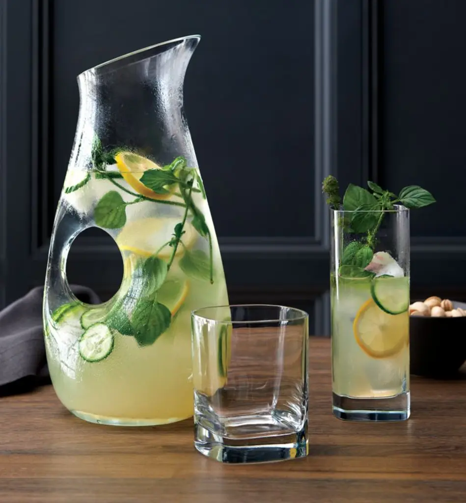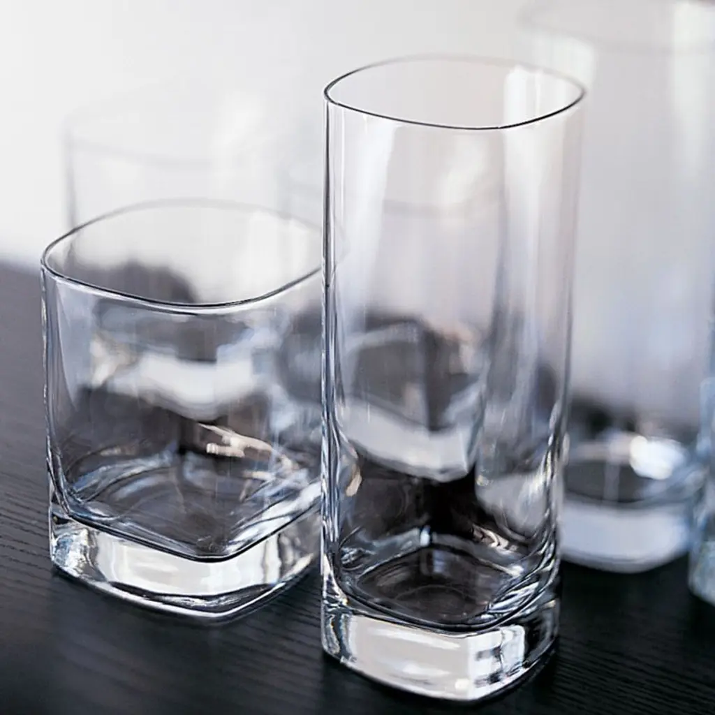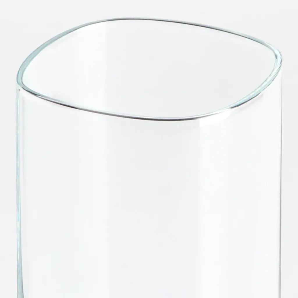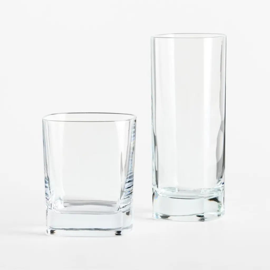 Our modern cooler glass squares the circle, offering a modern update on the classic tall drink glass. Featuring a softy rounded yet geometric silhouette, the glass looks cool and contemporary filled with a Tom Collins, gin and tonic or sparkling water. A thick sham grounds the look, adding nice heft to the hold. This cooler glass is dishwasher-safe for easy cleanup after cocktail hour and dinner parties.Serving a crowd? Use our quick and easy drink calculator to total drink quantities.
