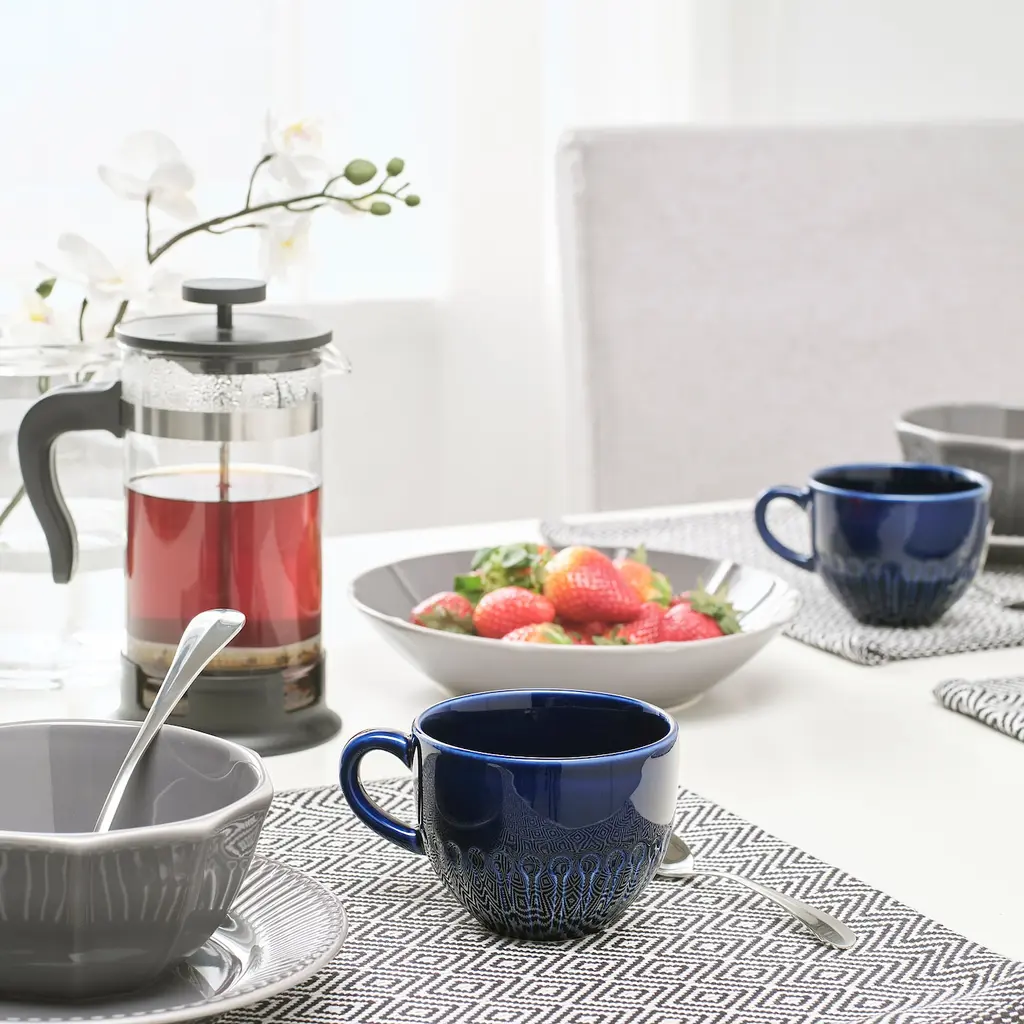 STRIMMIG Mug - stoneware blue 12 oz. The drainage gates on the underside transport water away that may otherwise accumulate when the mug is upside down in the dishwasher. Wash this product before using it for the first time.