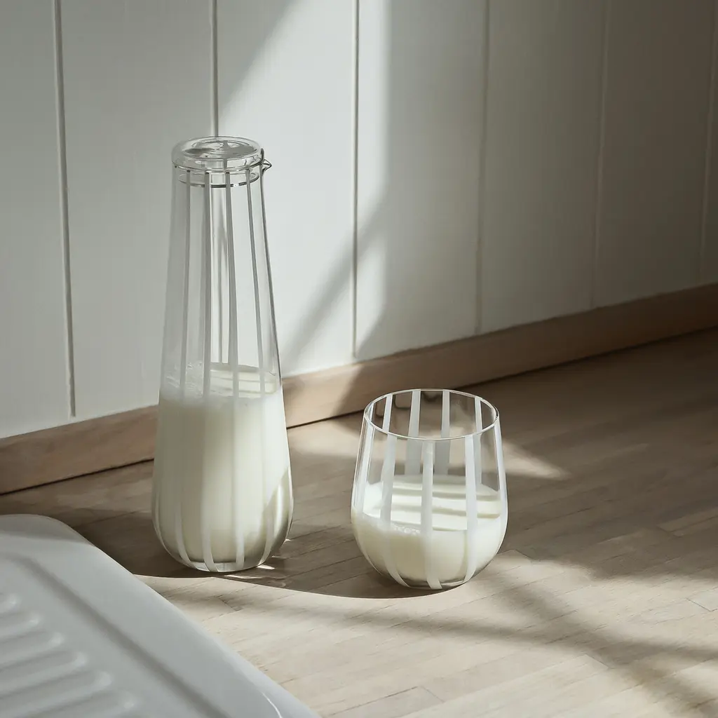Presenting the Stripe Carafe with Lid by Broste Copenhagen, an exquisite fusion of modern aesthetics and functionality. This elegant carafe, crafted from high-quality, mouth-blown glass, features subtle hand-applied stripes that create a unique textural appeal. Perfect for water, juice, or wine, the Stripe Carafe with Lid adds a sophisticated touch to any table setting, whether for daily use or special occasions. The carafe’s sleek design and minimalist striped pattern embody the essence of Nordic design principles, offering both style and practicality. Elevate your dining experience with the Stripe Carafe with Lid by Broste Copenhagen, where form meets function in perfect harmony.