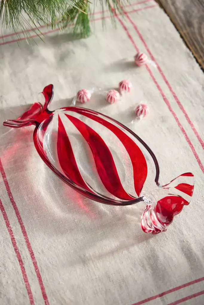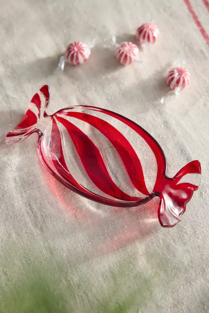 Serve your favorite sweets in playful style with this glass dish in the shape of an old-fashioned candy.