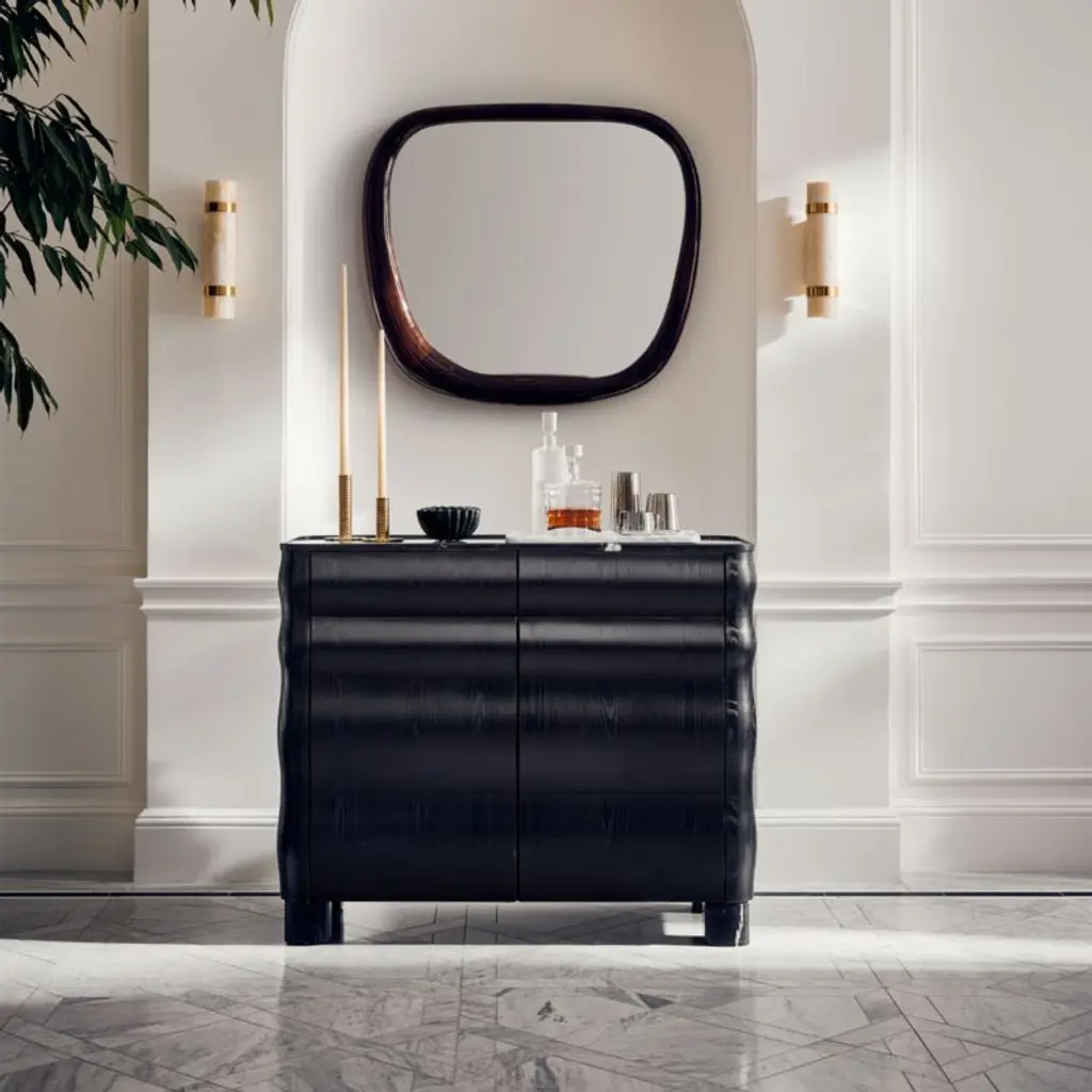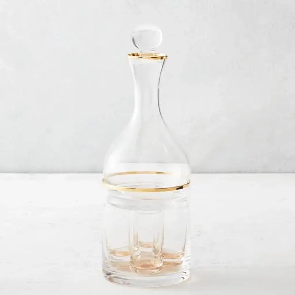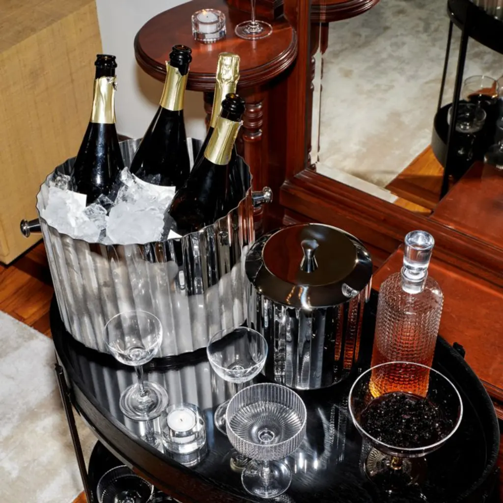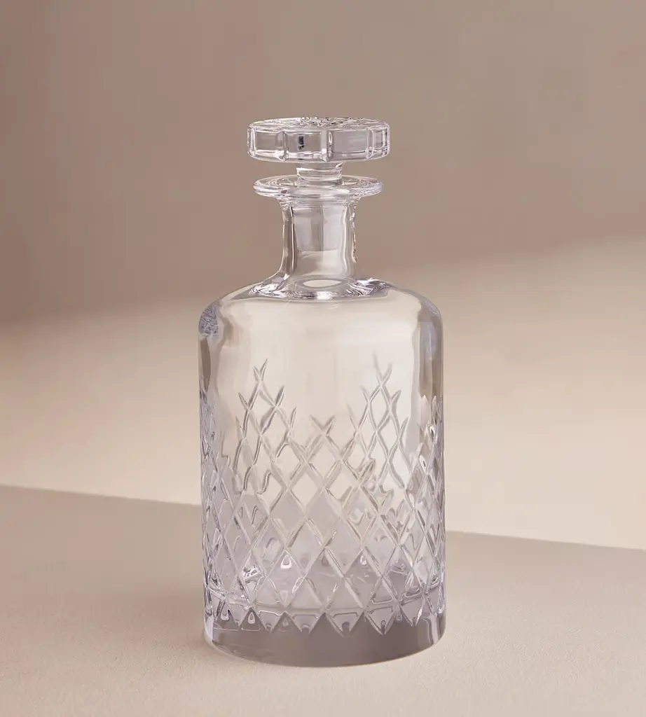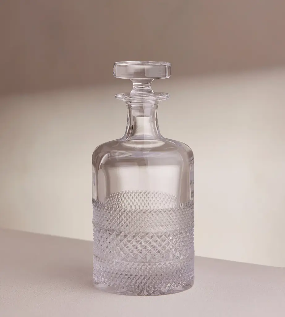 Store and serve spirits like a pro with this dashing retro decanter embossed with a multifaceted texture that reflects light. Must-have for any bar cart. CB2 exclusive