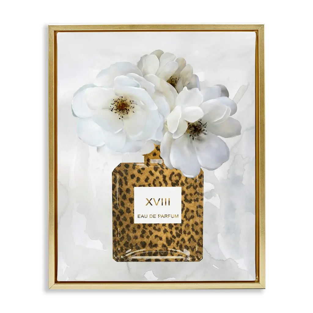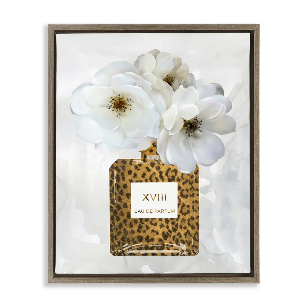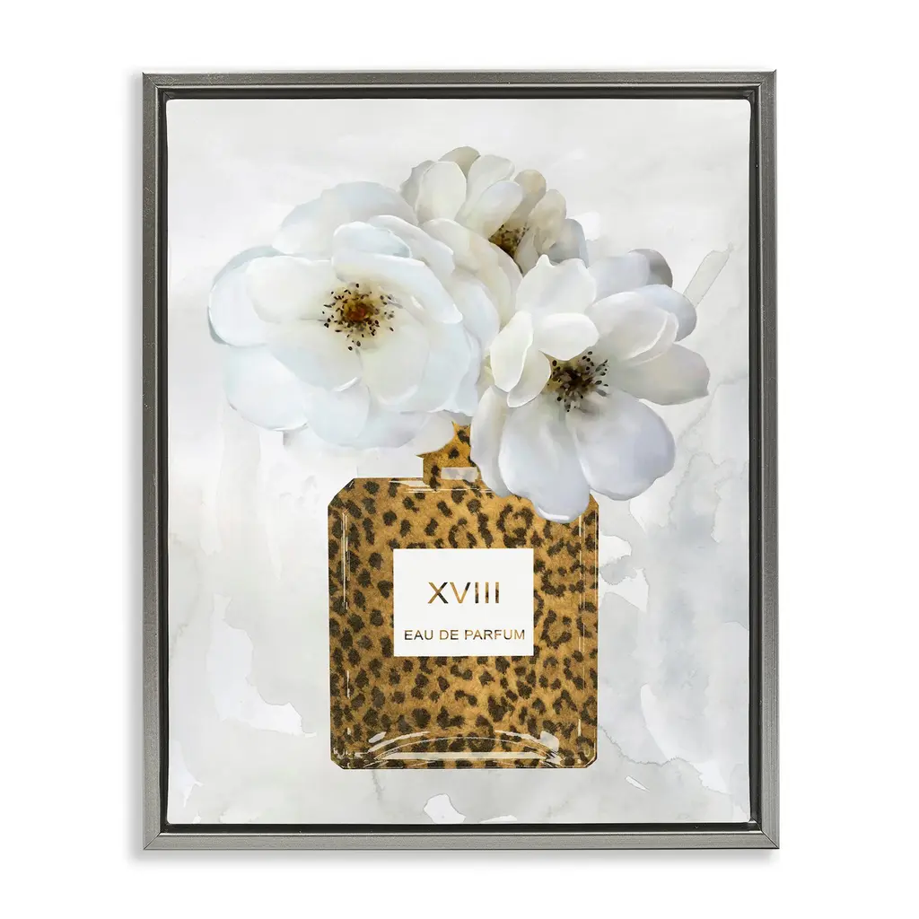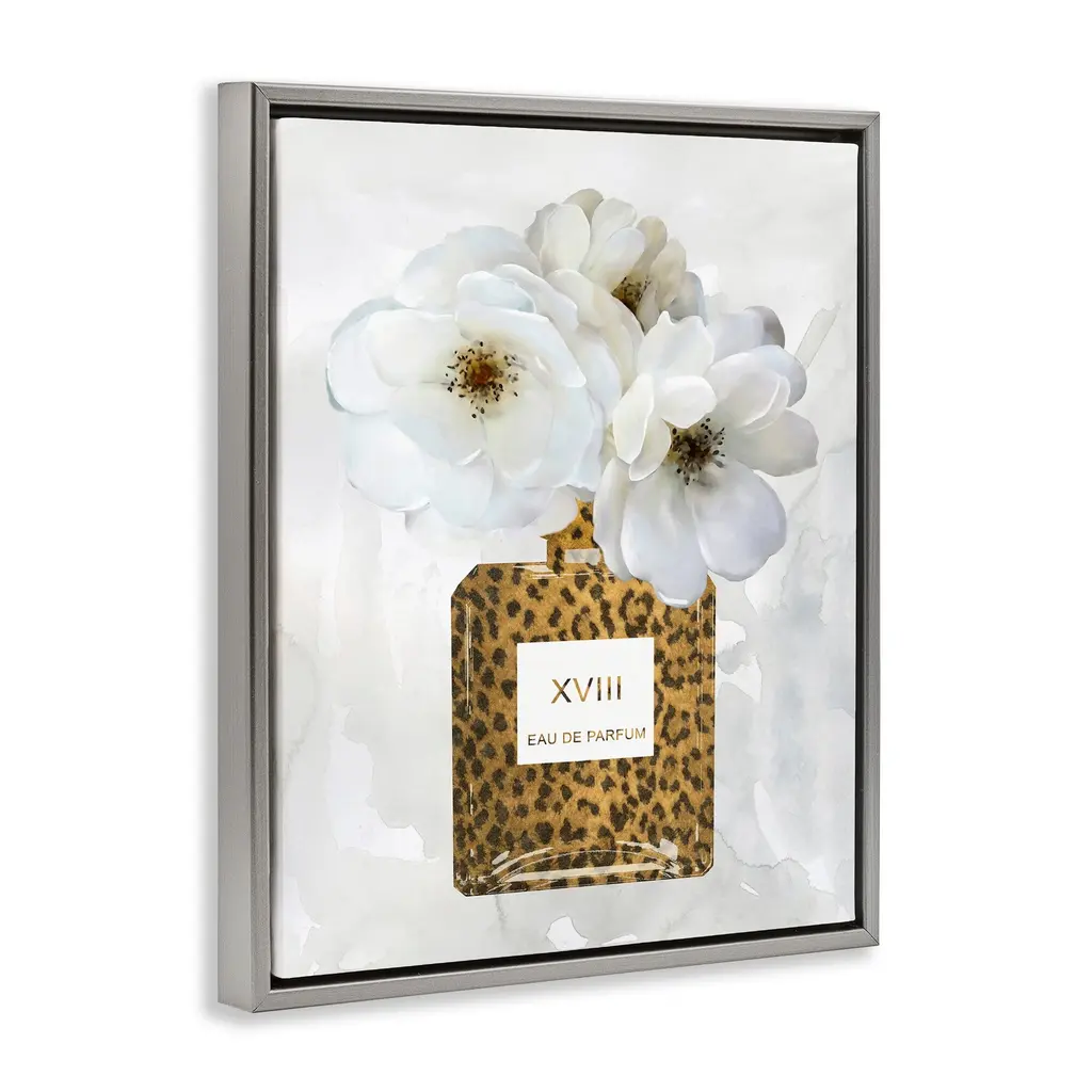 Stupell Leopard Print Perfume Bottle Glam White Spring Florals Floater Frame - 17 X 21 - Grey