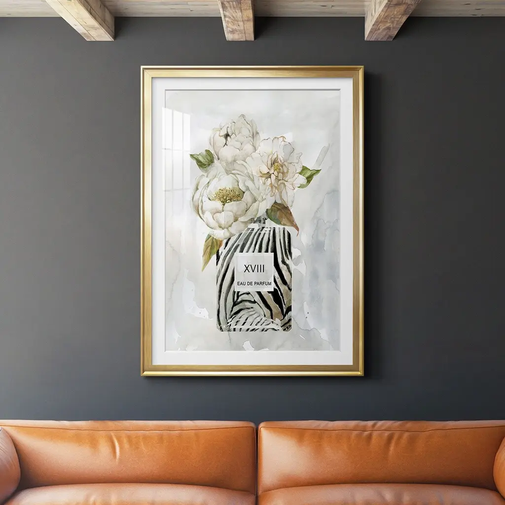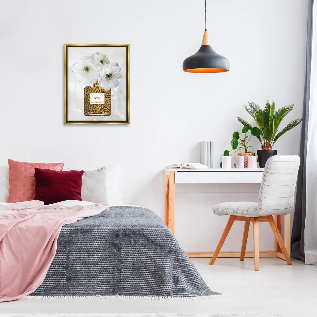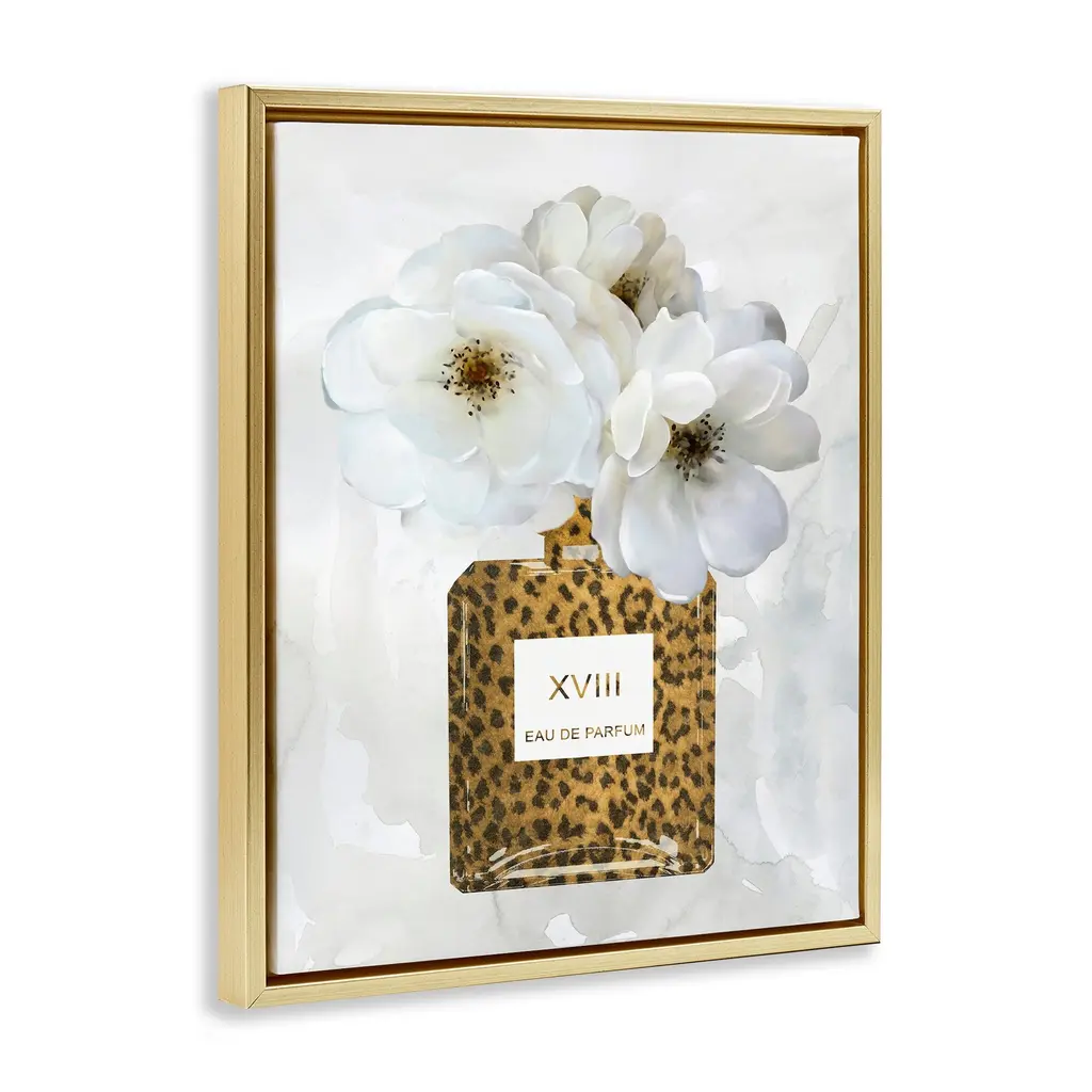 Stupell Leopard Print Perfume Bottle Glam White Spring Florals Floater Frame - 25 X 31 - Gold