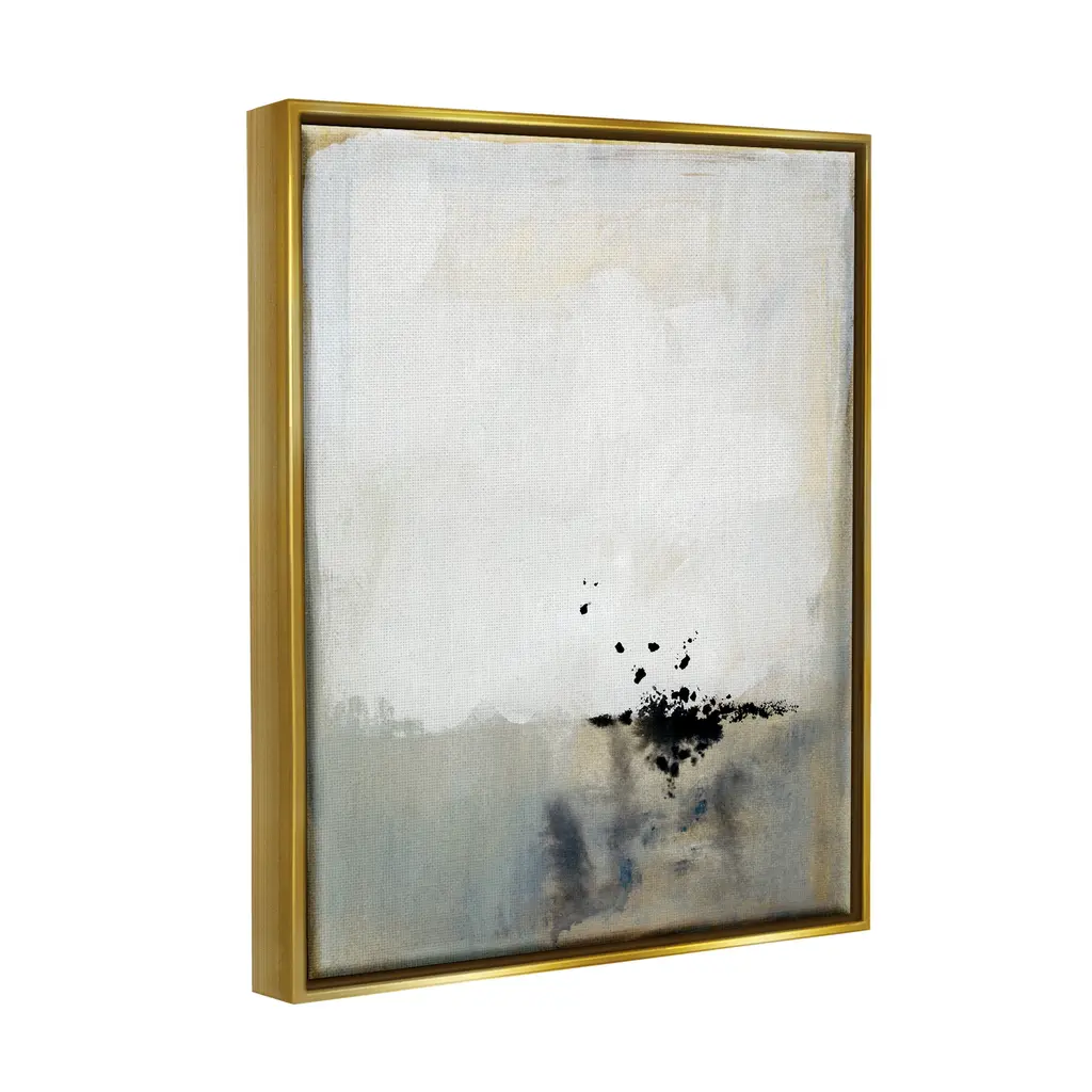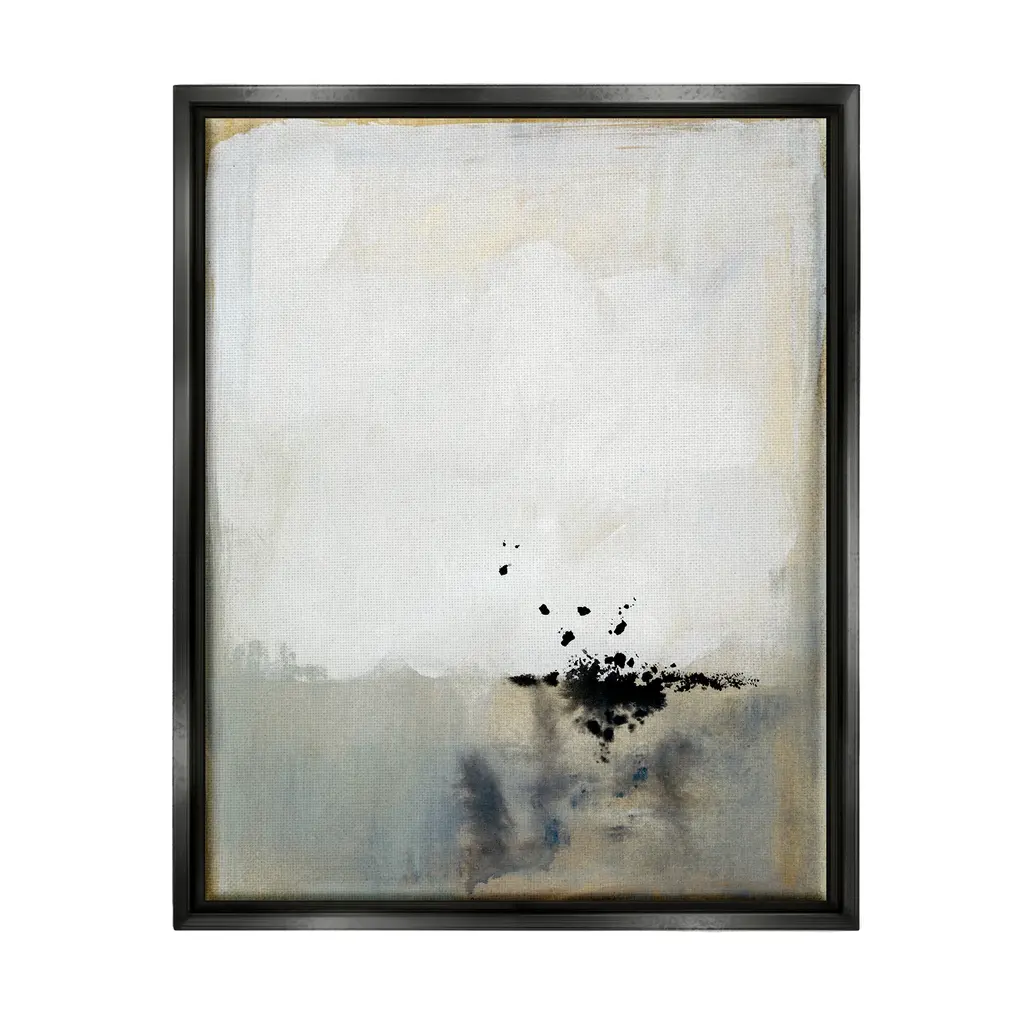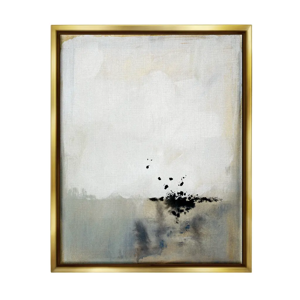 Stupell Neutral Beige Abstract Painting Black Ink Splatter Floater Frame - Grey - 24x30 - Grey