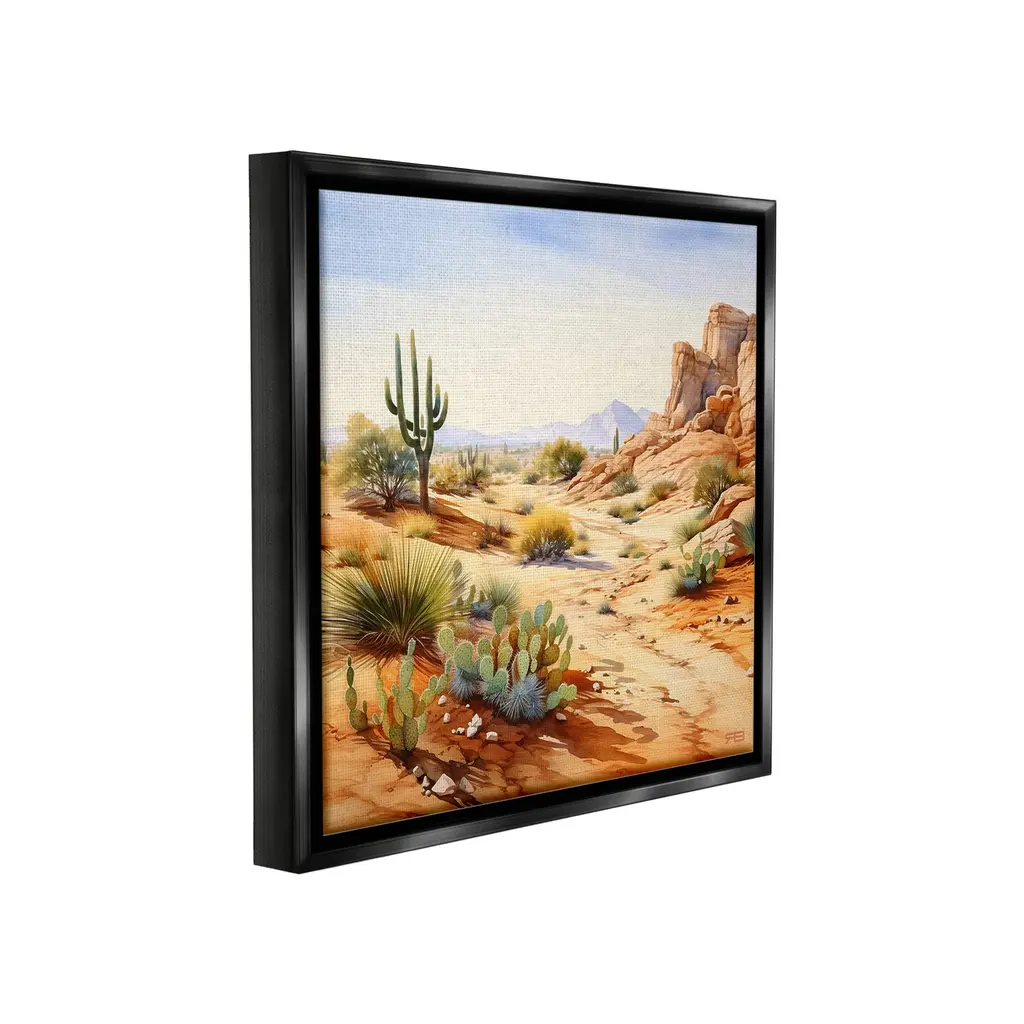 Elevate your home or office to the next level with Stupell Framed Floating Canvas Wall Art. Our premium hand-stretched canvas is mounted securely into a sturdy lightweight frame. The museum-style gap between the wrapped canvas and the box frame gives the illusion of floating artwork. Stupell Wall Art is made in the USA.Features: Dimensions: 18 x 1.7 x 18 Frame, 17 x 1.5 x 17 Canvas ArtFloating Frame Canvas Products are available in sizes 18"x18" and 25"x25". All Floating Frame Canvas Products have a 1.7" Depth.Wall Art is Ready to Hang with Hardware Free Hanging. No Installation required. For Easy Set Up Lean or Layer Artwork on Shelf or Against Wall. Artwork is Permently Fixed into the Frame.Our elevated 1.7" Thick Floating Frame is the perfect complement to our canvas style Wall Art. We use only the highest quality inks in house with industry leading printing solutions. Canvas is hand stretched over a durable wood foundation and then mounted securly into a Modern Box Frame. Made in the USA.Artwork Relates To: Road, Nature, Sky, Scenery, Landscape, Desert, Cactus, Mountain, Vegetation, Botanical, Plant, Canyon, PlateauDesign by RB