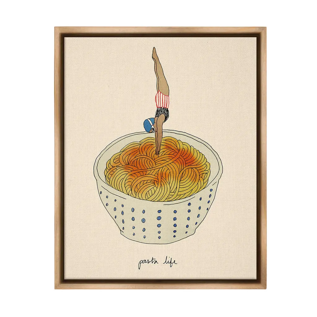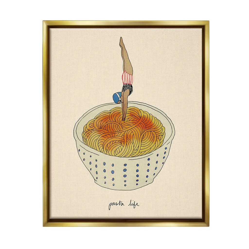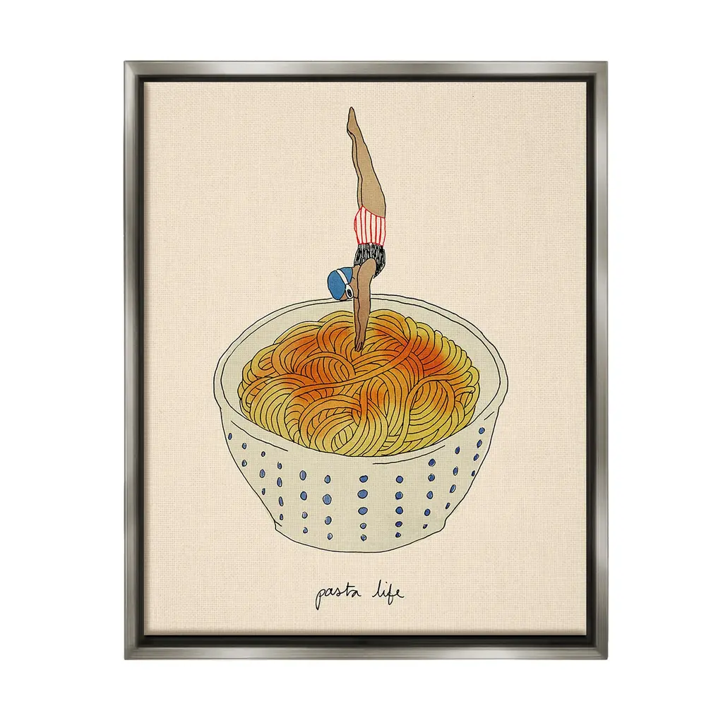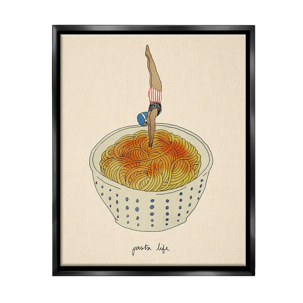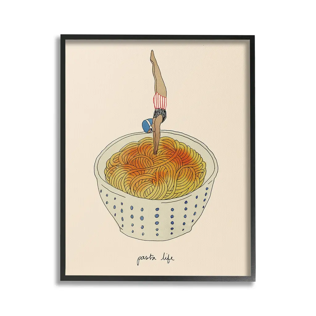 Add dimension to any room with our textured Framed Giclee Artwork. Our framed artwork is securely mounted into a 1.5-inch thick wood grain frame and ready to hang. Frames are available in three alluring styles: black, gray farmhouse and white. In addition, you should check out our oversized options if you want a statement piece. Stupell Wall Art is made in the USA.Features: Dimensions: 11 x 1.5 x 14 FramedFramed Giclee Products are available in the sizes 11"x14", 16"x20" or 24"x30". All Framed Giclee Products have a 1.5" Depth. Wall Art is Ready to Hang with Hardware Free Hanging. No installation required. For Easy Set Up Lean or Layer Artwork on Shelf or Against Wall.Our giclée prints are carefully mounted on a durable MDF backing, and then perfectly finished in a 1.5 inch thick woodgrain frame. Mounted frame colors include black, gray farmhouse and white. Made In USA.Artwork Relates To: Food, Meal, Bowl, Pasta, Kitchen, Person, Woman, Swimsuit, Swimmer, Pasta LifeDesign by Victoria Barnes