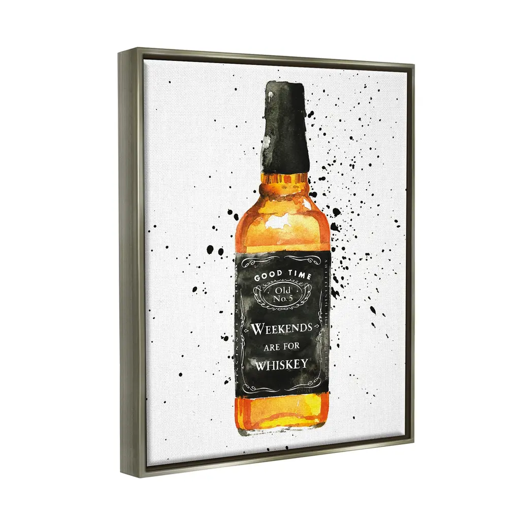 Stupell Weekends Are For Whiskey Quote Liquor Bottle Floater Frame - White - 24 X 30 - Grey