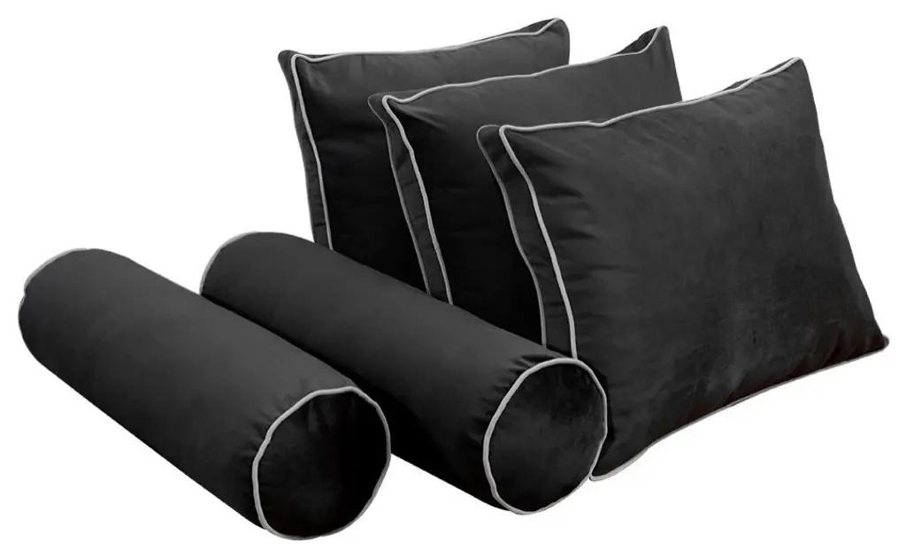 • Style-V2 Velvet Knife Edge Indoor Daybed Bolster & Back Pillow Cover Set• • MATTRESS AND INSERTS NOT INCLUDED• • Fully Encase Cover with Hidden Zipper• Fabric: 100% Polyester Velvet Fabric• Fabric: 300 Gram/m2• 2 x Bolster Pillow Cover Only: 27" x 8"• 2 x Back Pillow Cover Only: 36.5" x 20" x 5"• Color: AD347• Edge Trim: Knife Edge• Cleaning Tip: Professional Cleaning Only• Quantity: 1