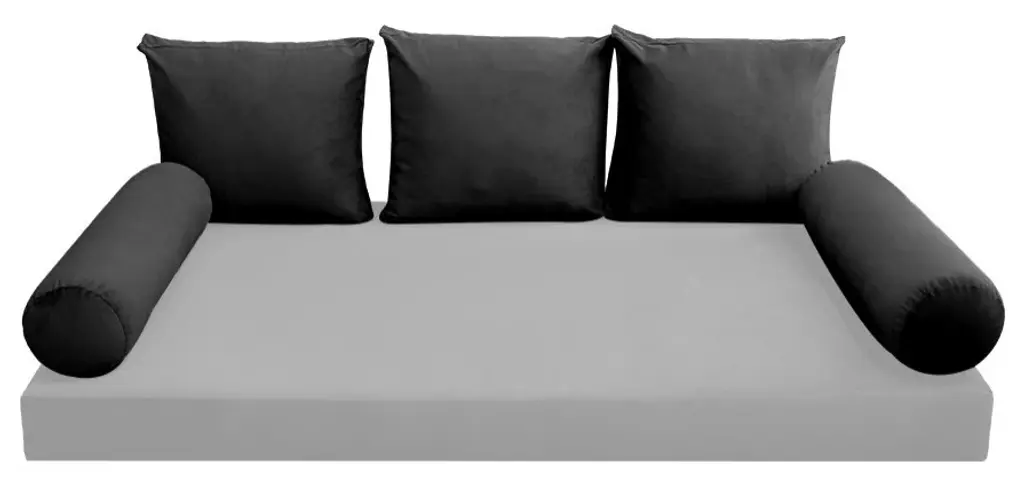 • Style-V3 Velvet Knife Edge Indoor Daybed Bolster & Back Pillow Cover Set• • MATTRESS AND INSERTS NOT INCLUDED• • Fully Encase Cover with Hidden Zipper• Fabric: 100% Polyester Velvet Fabric• Fabric: 300 Gram/m2• 2 x Bolster Pillow Cover Only: 42" x 8"• 3 x Back Pillow Cover Only: 24.5" x 20" x 5"• Color: AD350• Edge Trim: Knife Edge• Cleaning Tip: Professional Cleaning Only• Quantity: 1