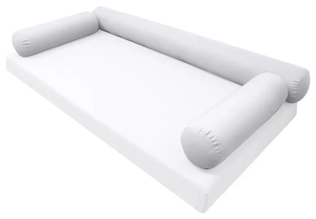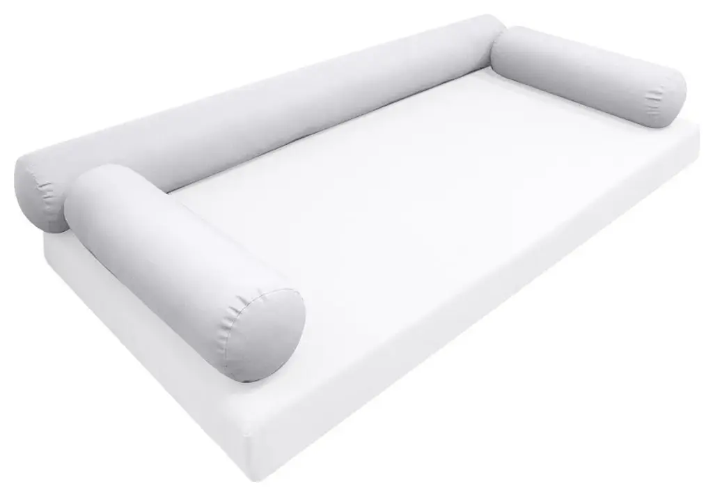 • FINAL SALE: No returns or exchanges • • • • FABRIC SAMPLE IS AVAILABLE, PLEASE CONTACT US • • • • Style-6 Crib Size Knife Edge Bolster Pillow Cover Set ONLY• • MATTRESS AND INSERTS NOT INCLUDED• • 2 x Bolster Pillow Cover Only: 16" x 8"• 1 x Bolster Pillow Cover Only: 50" x 8"• Color: AD105• THIS COLOR IS NOT WHITE. IT IS LIGHT GREY• Edge Trim: Knife Edge• Fabric: 230 Gram Polyester Upholstery• Hidden Zipper• Water Repellent • Not Water Proof• • Tips: Please cover or store cushion pillow in rainy season• Cleaning: Soap clean and rinse off with water hose. Outdoor durable!• Quantity: 1• FINAL SALE: No returns or exchanges