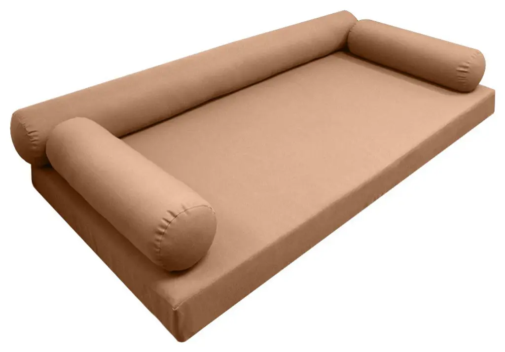 • Style-6 Twin-XL Size 4 PC Knife Edge Mattress Bolster Cover Set ONLY• • MATTRESS AND INSERTS NOT INCLUDED• • Fully Encase Cover with Hidden Zipper• 1 x Twin-XL Fitted Sheet Cover Only: 80" x 39" x 6"• 2 x Bolster Pillow Cover Only: 27" x 8"• 1 x Bolster Pillow Cover Only: 78" x 8"• Color: AD104• Edge Trim: Knife Edge• Fabric: 230 Gram Polyester Upholstery• Hidden Zipper• Water Repellent • Not Water Proof• • Tips: Please cover or store cushion pillow in rainy season• Cleaning: Soap clean and rinse off with water hose. Outdoor durable!• Quantity: 1