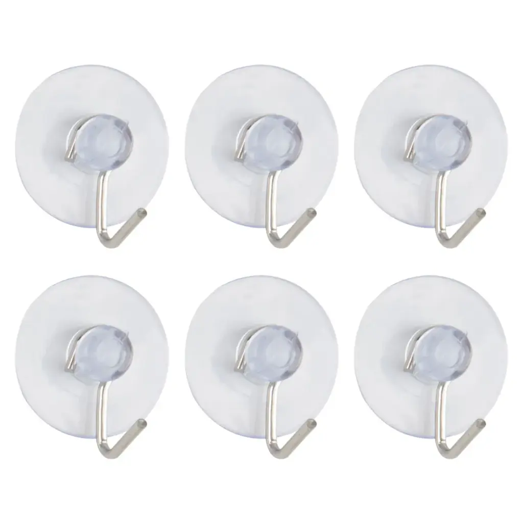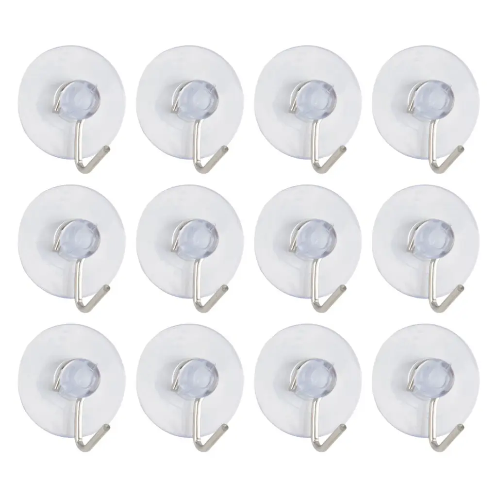 Suction Cup Hooks 1"dia Removable Metal Hook Vacuum Hooks Hangers - Clear - 12pcs
