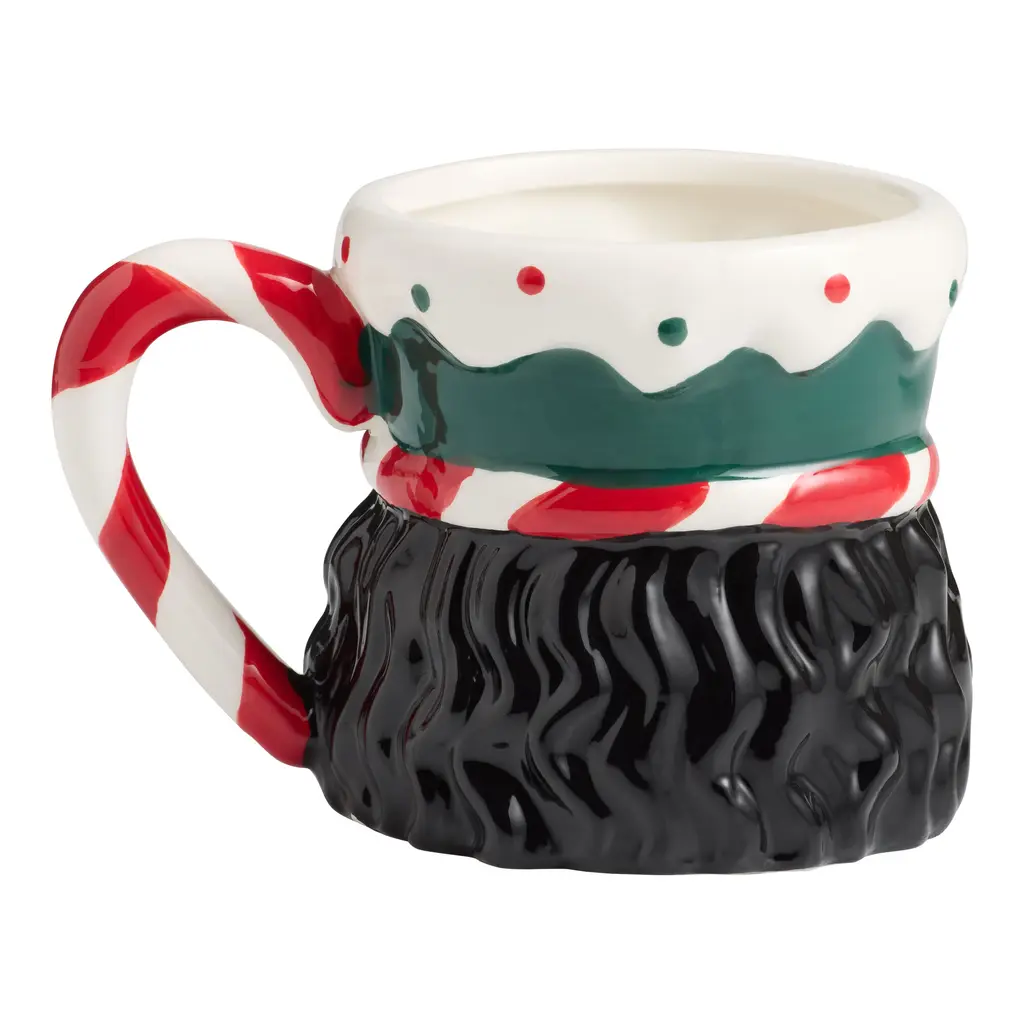 Add a dash of Christmas whimsy to your morning cuppa with our exclusive nutcracker-shaped coffee cup. Hand painted with rosy cheeks, a classic mustache, and an array of candy details, this dimensional mug comes in a choice of color palettes. It's a merry addition to your cup collection and makes the perfect holiday hostess gift when paired with any of our specialty coffee, tea, and cocoa blends.