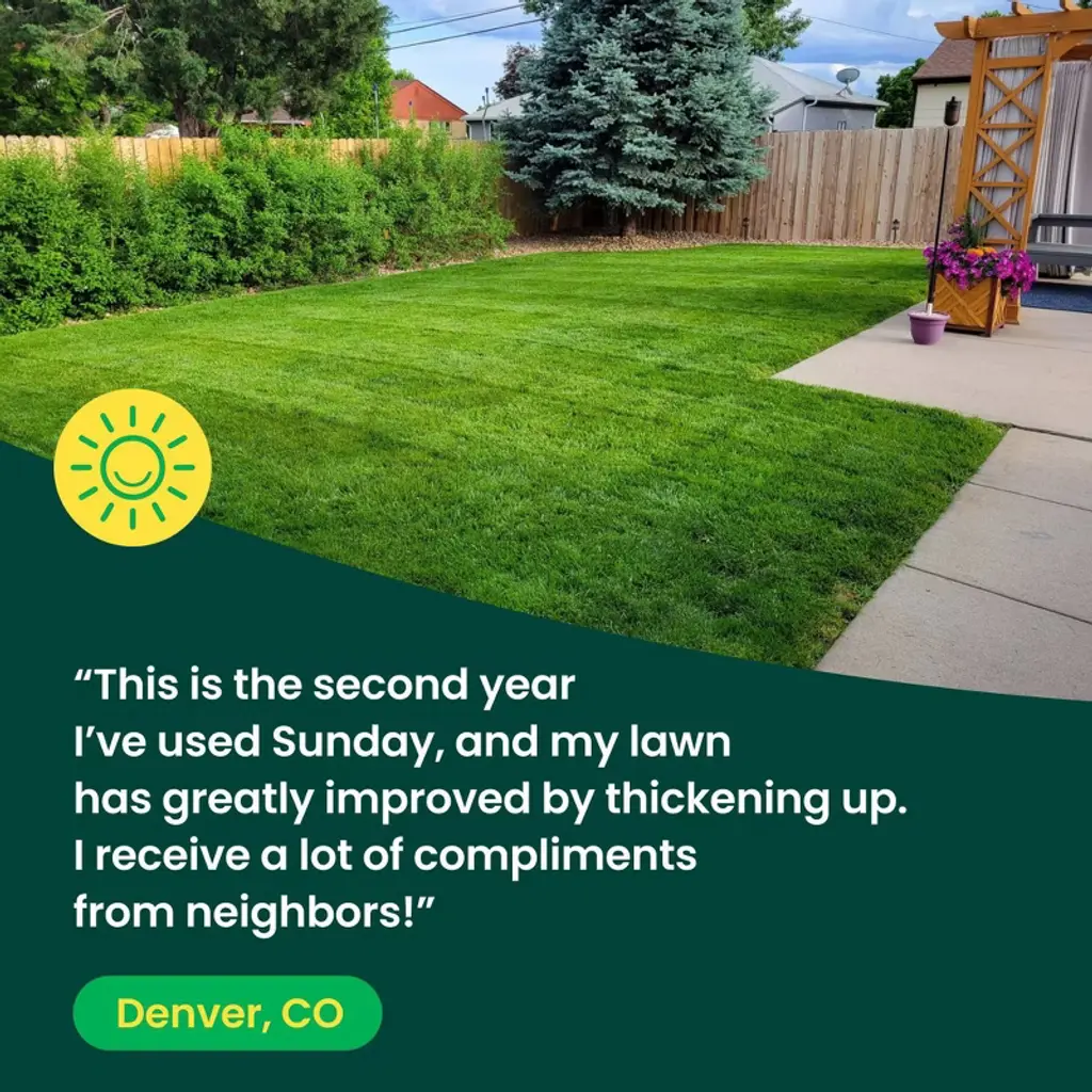 Sunday Lawn Kickstart | Liquid Lawn Fertilizer | 5,000 Sq. Ft. | 22-0-2 NPK | 42.3 oz. DESCRIPTIONA powerful 22-0-2 liquid lawn fertilizer that transforms lawns with professional-grade nutrients. Our planet-friendly formula combines nitrogen for rapid growth, iron for deep greening, and potassium for stress resistance – all in 100% recycled and recyclable packaging. Features our redesigned ergonomic sprayer for 30% faster application. INGREDIENTS Nitrogen (22%): Powers healthy growth and deep root developmentIron: Enhances deep green colorPotassium (2%): Supports stress tolerance and hydrationINSTRUCTIONSBest applied during active growth periods in early morning or evening:Attach sprayer to your hose and fertilizer containerSpray evenly across lawn (10 minutes to apply full bottle)Allow to dry completely before returning to the lawnReapply every 4-6 weeks during growing seasonFor best results, use with Sunday weed control and grass seed.Application based on yard size:1,000–2,500 sq. ft.: 1/2 bottle2,500–5,000 sq. ft. 1 full bottle5,000–10,000 sq. ft.: 2 bottle