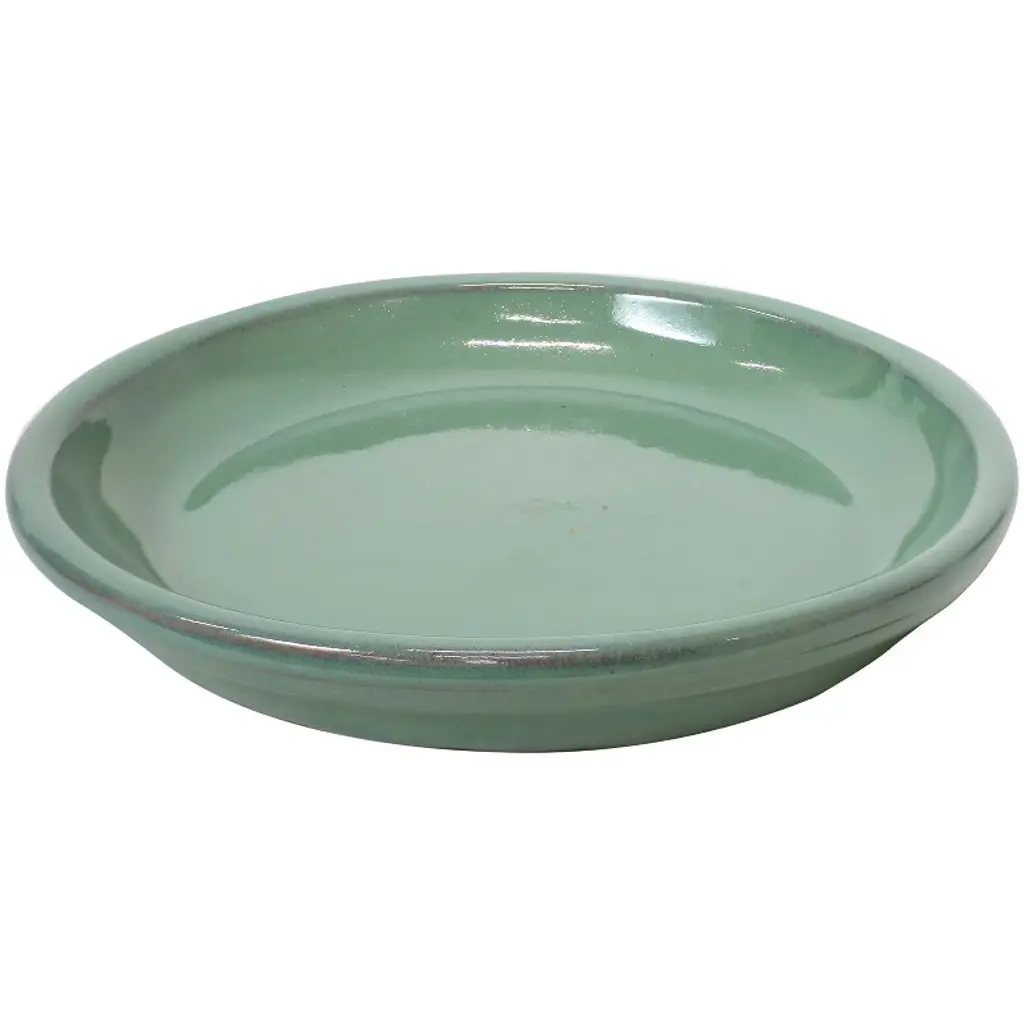Sunnydaze Chalet Uv- And Frost-resistant Ceramic Planters With Drainage Holes And Saucers - 12" Diameter - Seafoam - 2-pack