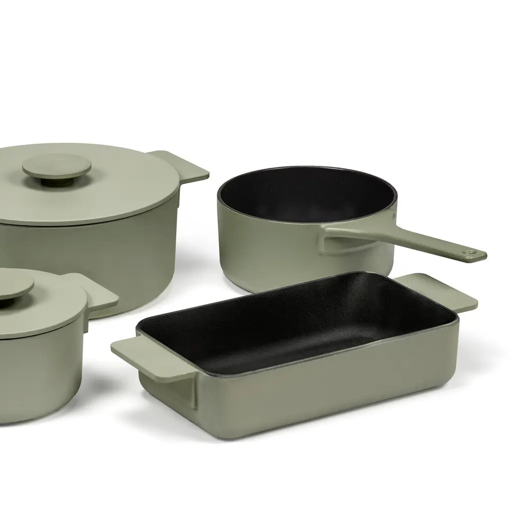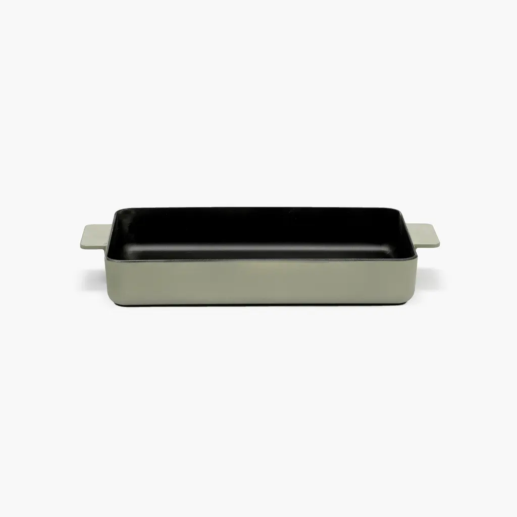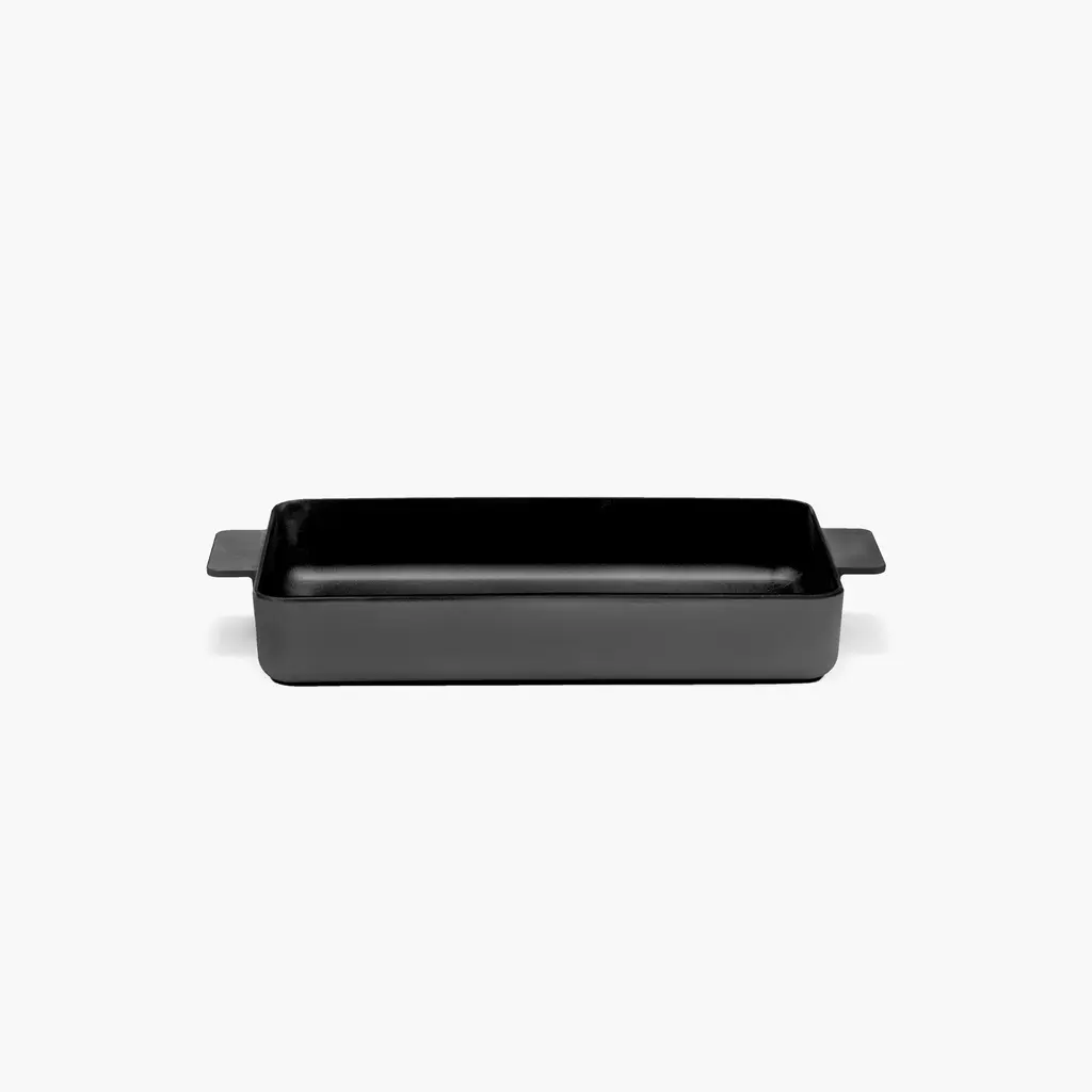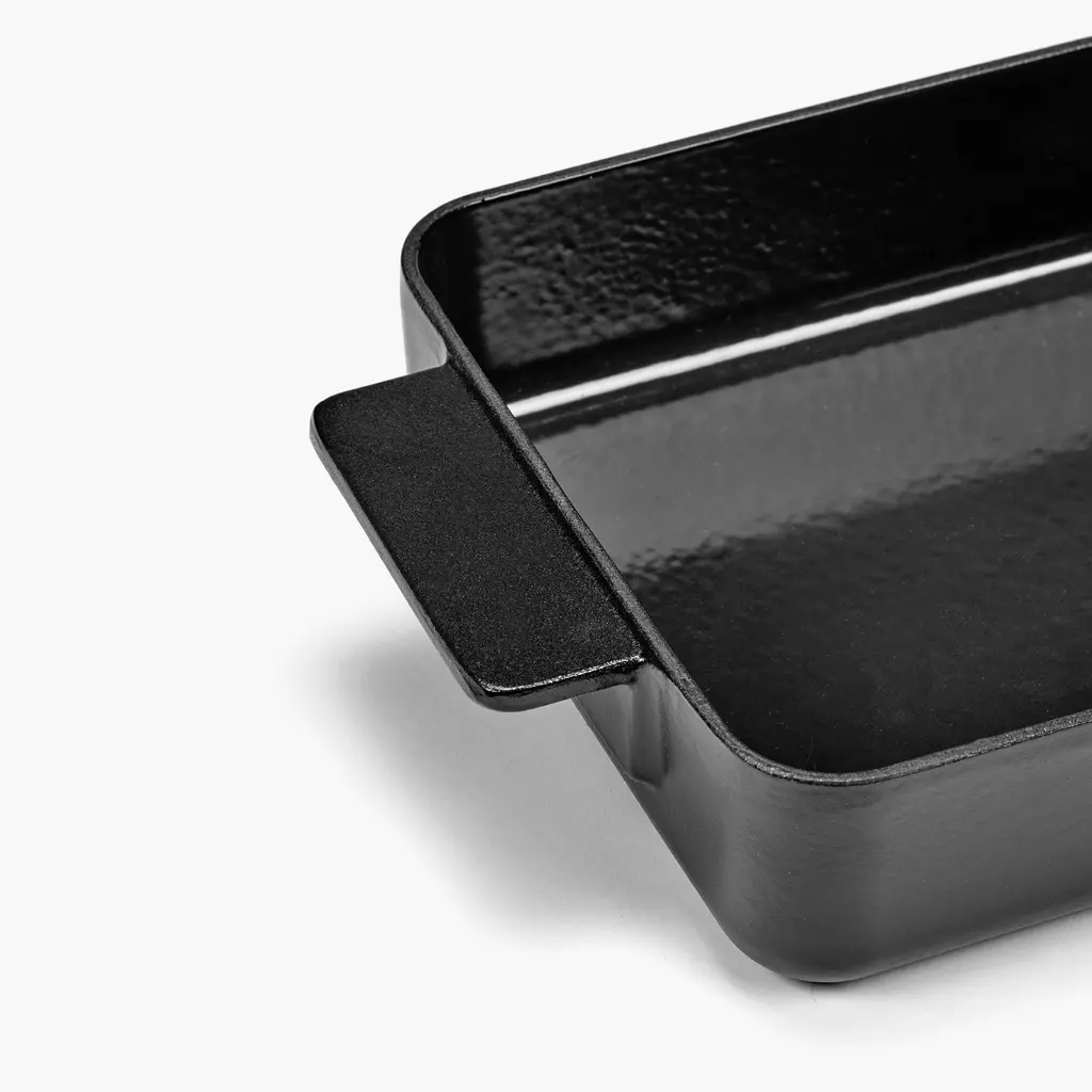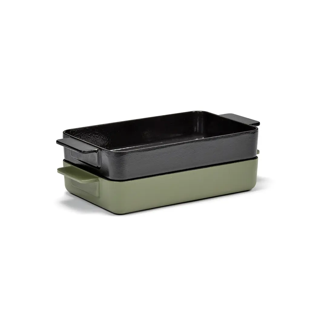 Casseroles, lasagna, or cobblers for the whole family. The Serax Surface Cast Iron Oven Dish XL is perfect for whenever you need to prepare food for more people or want to meal prep for the upcoming week. For the Surface series of oven dishes, Sergio Herman used his many years of expertise as a professional chef to design high-quality, versatile cookware for the modern cook. Made from cast iron, this oven dish is robust and compatible will all heat sources, from ovens to gas and induction stovetops. Two wide handles provide excellent grip even with oven mitts, so you can safely handle hot food. Available in Black and Camo Green colors, this cast iron oven dish also comes in L and M sizes.