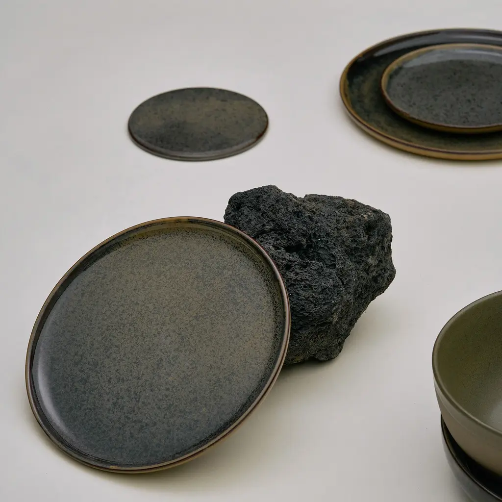 Serve any meal with a rustic twist and keep your dining space elegant with the Serax Surface Dinner Plate. Made from earthenware, these plates feature a glazed surface with glossy or semi-matte finishes, depending on color. Options range from dark gray to green, offering an easy way to bring nature-inspired hues to your dining table. As practical as they are pretty, the Serax Surface Starter Plates are suitable to use in the oven, microwave, and dishwasher. Use them individually or pair them with the dinner plates, deep plates and bowls from the same collection to add warmth and texture to your tablescapes.
