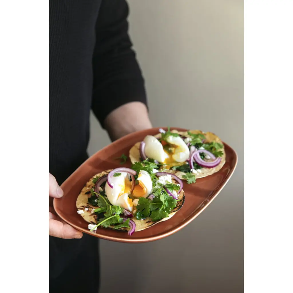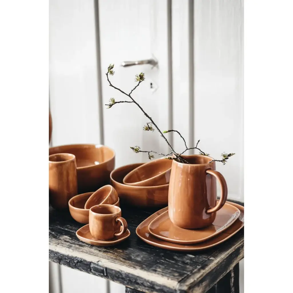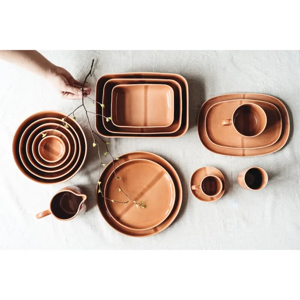The Svelte plate by Heirol completes the table settings with its soft appearance. The 10.63 in (27 cm) plate is suitable not only as a dinner plate but also as a serving dish. The terracotta-colored Svelte plate is made of stoneware and glazed with recycled glass. The Svelte plate is a part of the Nosse Ceramics for Heirol collection, which celebrates the culture of gathering together. Svelte tableware is characterized by its versatility, simplicity, timelessness, and environment-friendly materials. The shapes and colors of the dishes combine easily together, creating harmonic and cozy table settings for both everyday and festive occasions.
