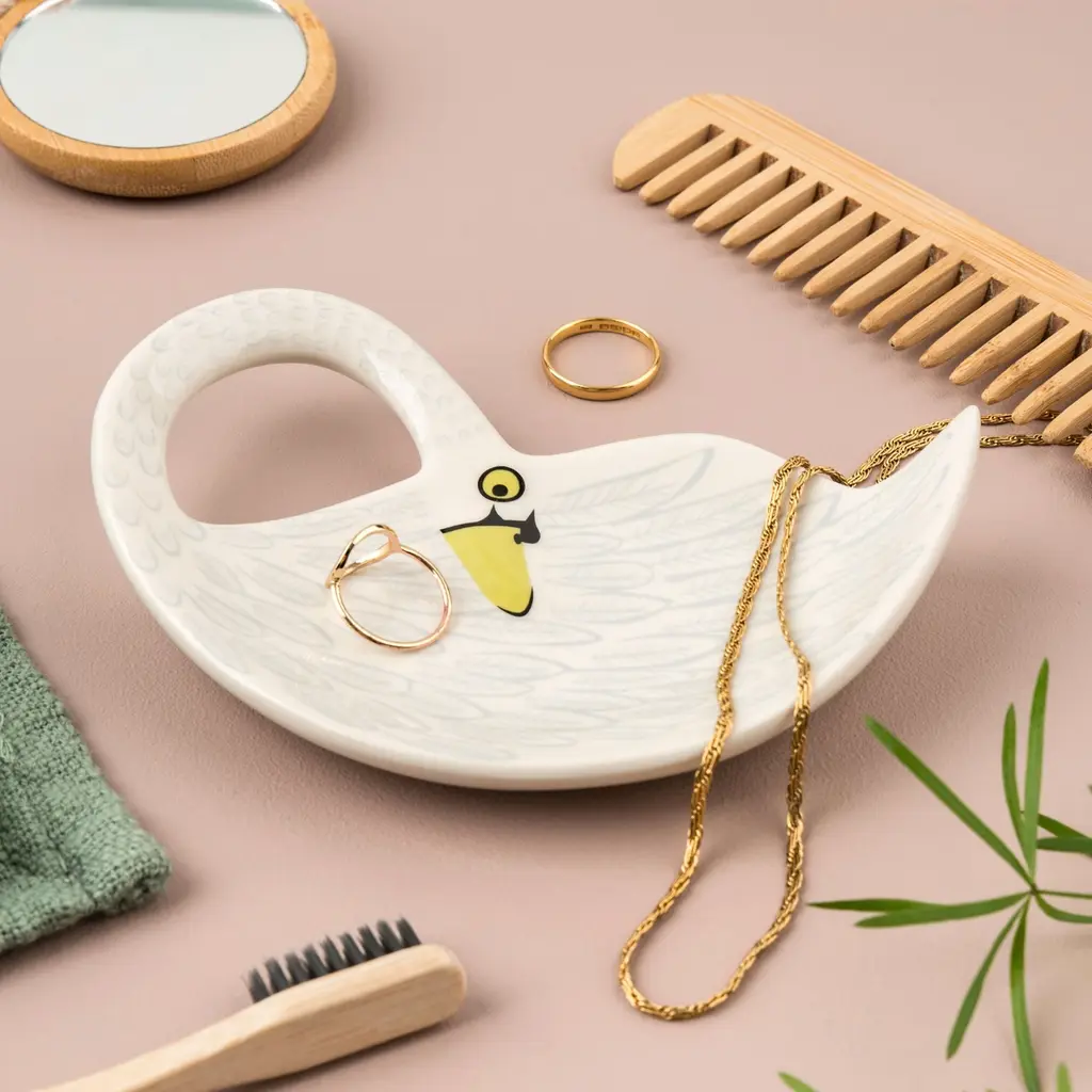 Tidy your trinkets with this elegant Swan Trinket Dish, the perfect keeper of your precious purchases.Handmade in Sri Lanka from stoneware ceramic.14 cm wide by 10 cm high.