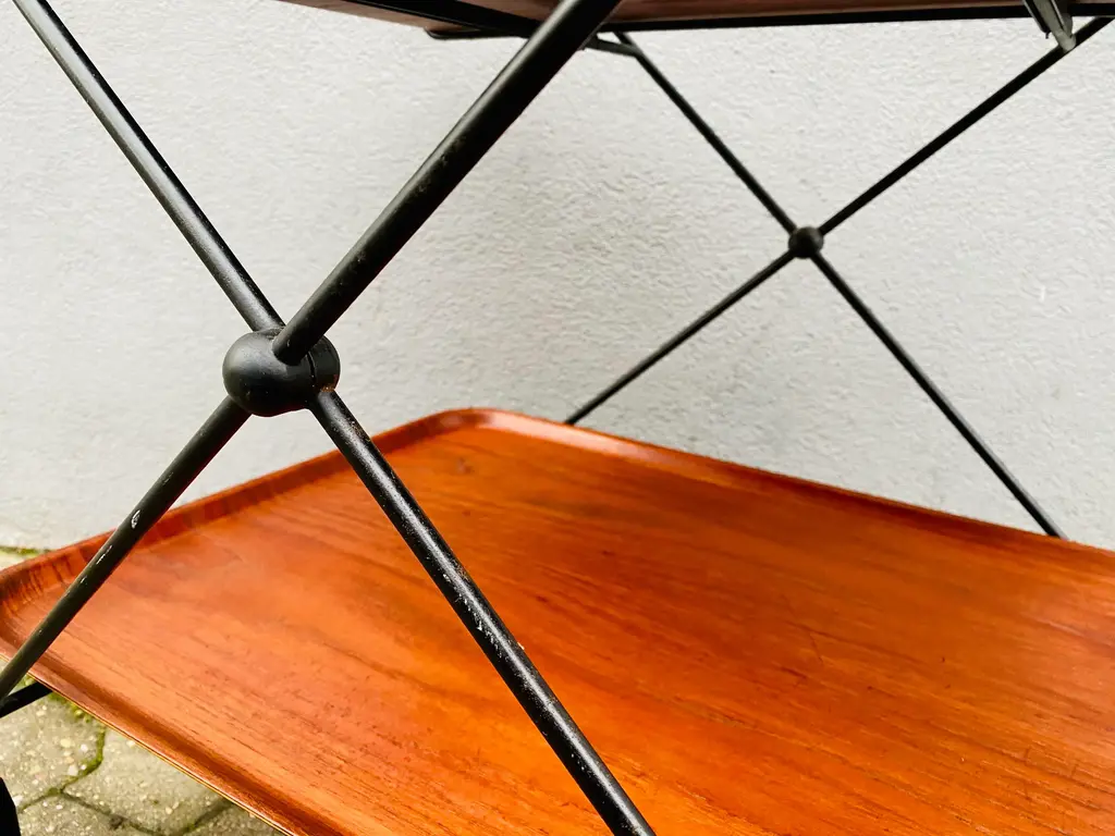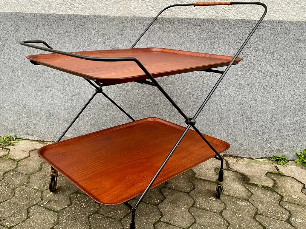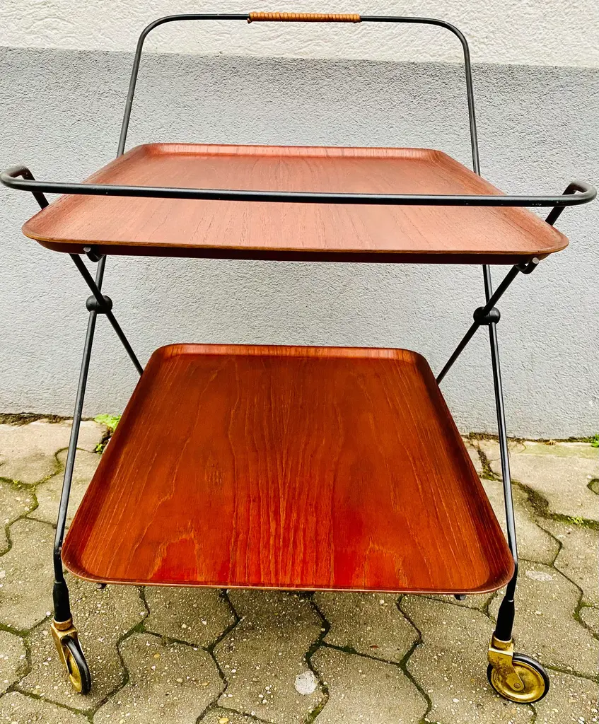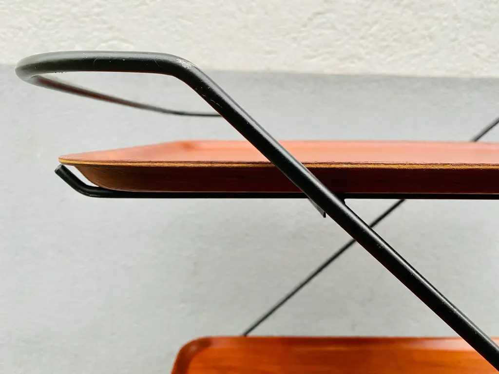 Swedish Bar Cart by Paul Nagel for JIE Gantofta, 1959s, in Good conditions. Designed 1950 to 1959 This piece is attributed to the mentioned designer/maker. It has no attribution mark and no official proof of authenticity, however it is well documented in design history. I take full responsibility for any authenticity issues arising from misattribution