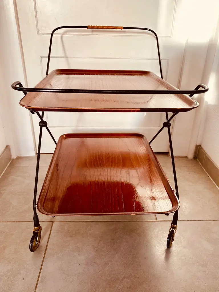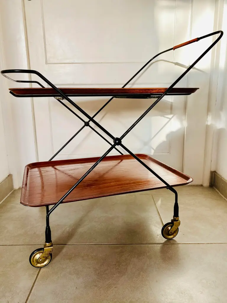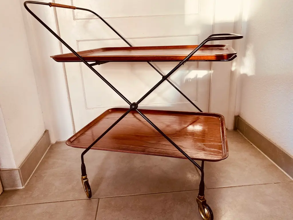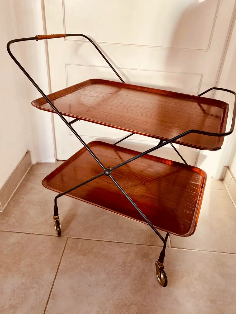 Swedish Bar Cart by Paul Nagel for JIE Gantofta, 1959s, in Good conditions. Designed 1950 to 1959 This piece is attributed to the mentioned designer/maker. It has no attribution mark and no official proof of authenticity, however it is well documented in design history. I take full responsibility for any authenticity issues arising from misattribution