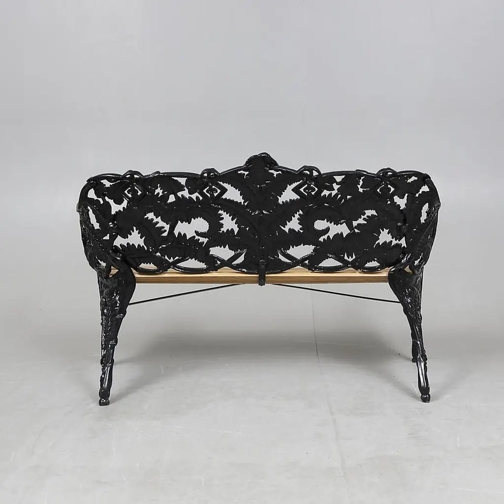 Cast metal bench made by Melins metal foundry, Anderstorp in Sweden in the 1960s.Two pieces available, delivery time 2-4 weeks.