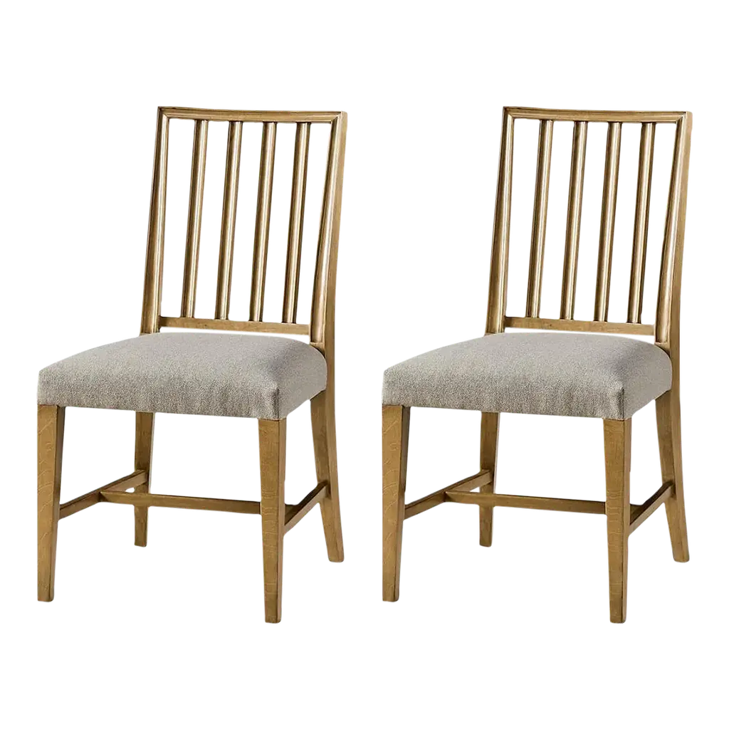Swedish side chair in our sun bleached cherry finish, with pristine forms and clean lines capable of dressing a dining space up or down with ease. With a molded slat back and a delightfully plush cushion upholstered in a creamy oatmeal performance fabric for durability and understated elegance.Constructed from solid beech wood and finished in our sun bleached cherry finish, this refined Swedish chair design is a conduit into timeless elegance.Dimensions: 20" W x 22.5" D x 37.75" HSeat - 19" H.These chairs ship two at a time. Kindly select multiples of two.