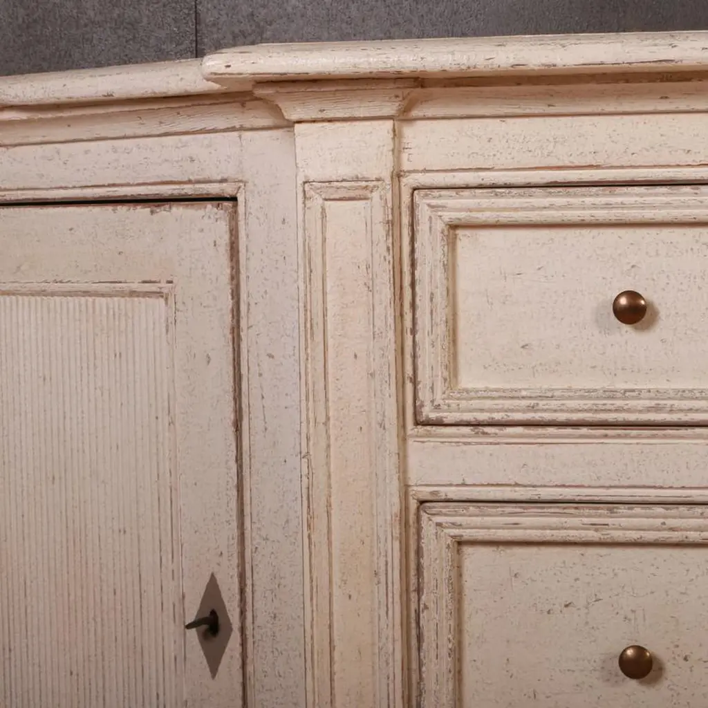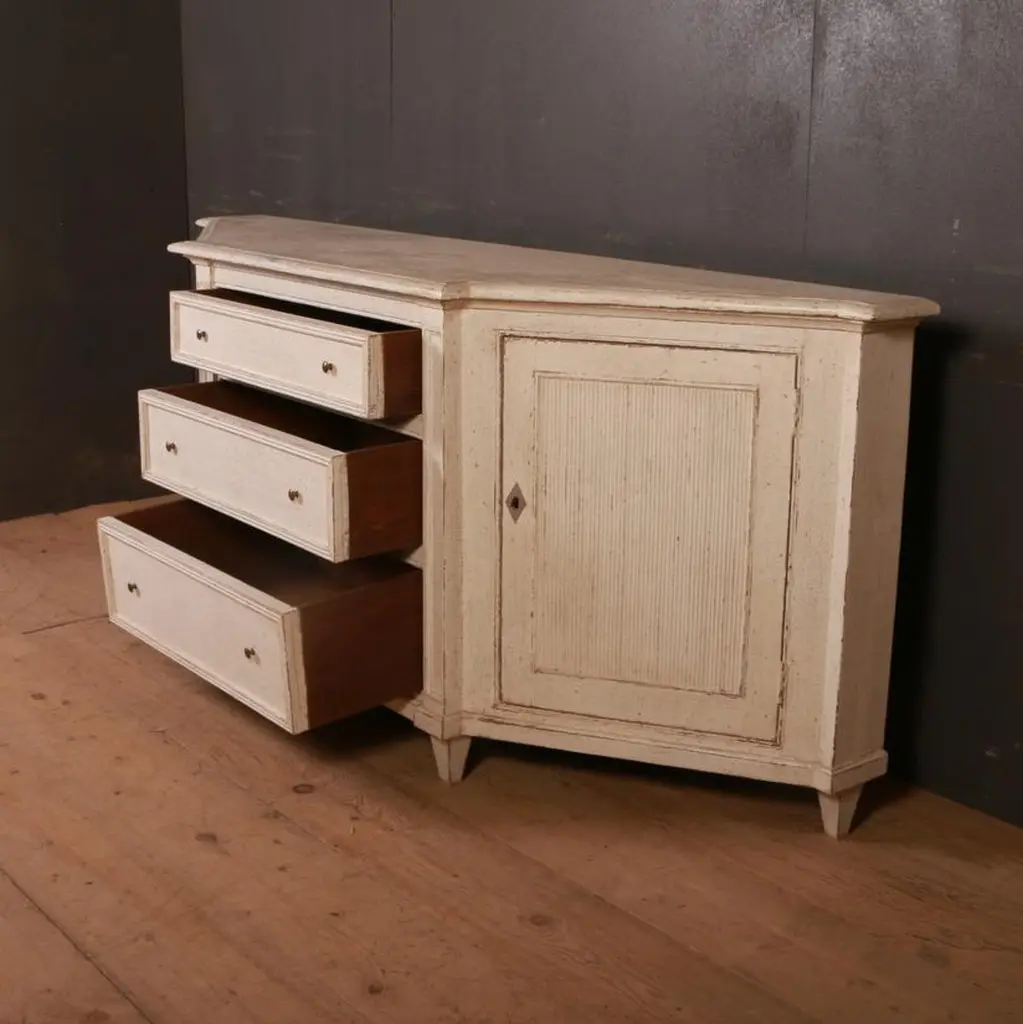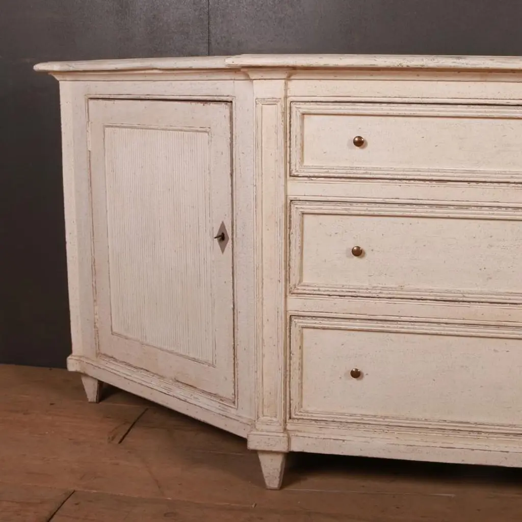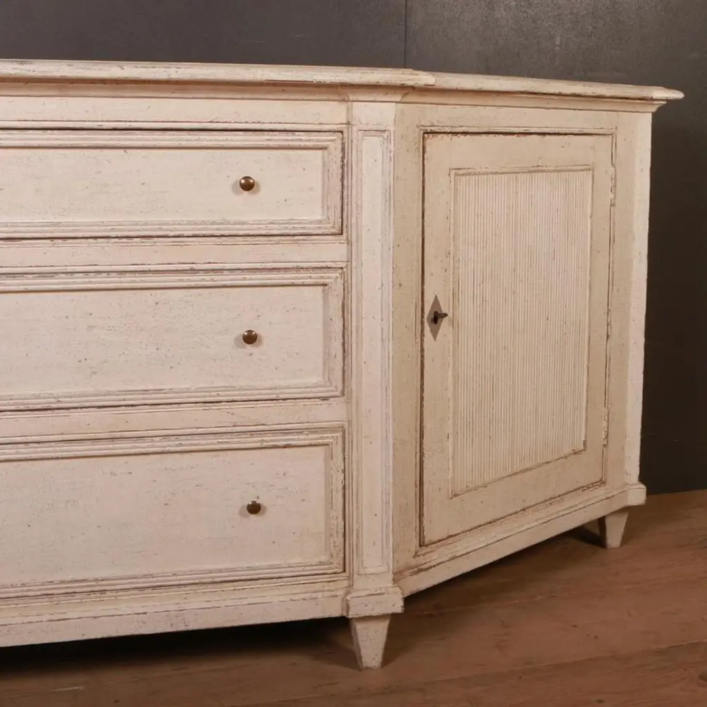 Custom made Swedish style enfilade with 3 drawers and canted cupboards. This can be made to your size and paint color.Dimensions:77 inches (196 cms) wide19.5 inches (50 cms) deep33 inches (84 cms) high.