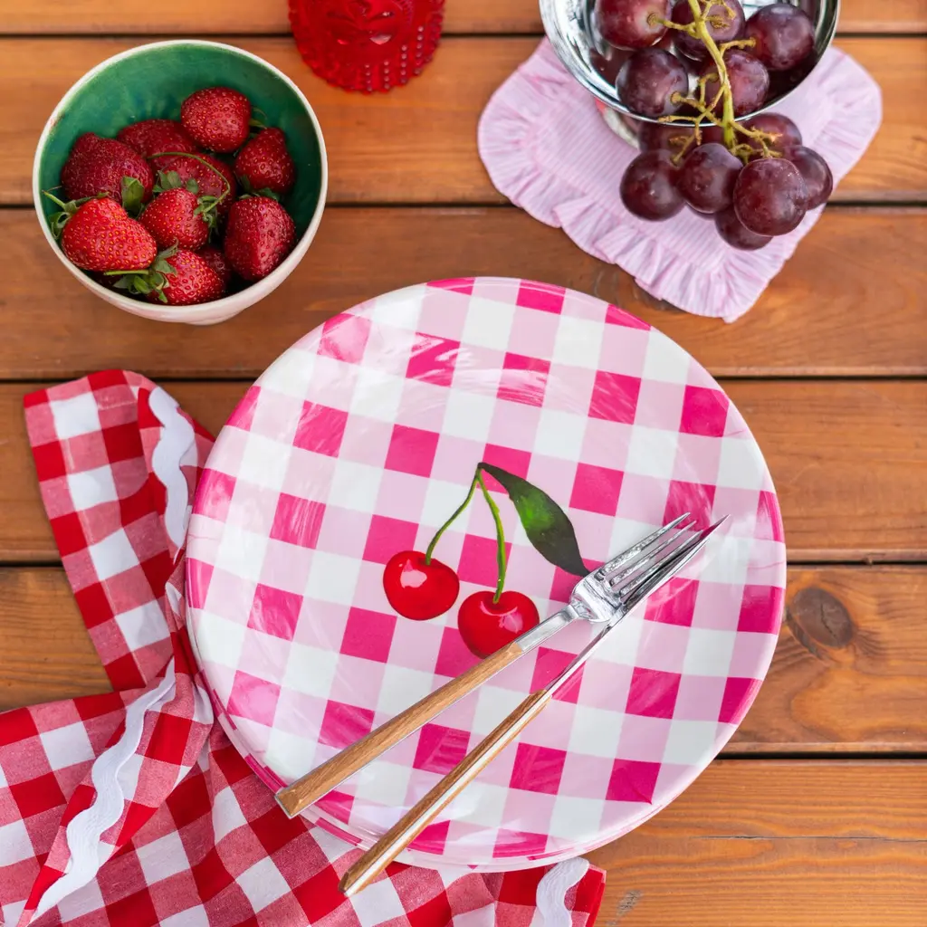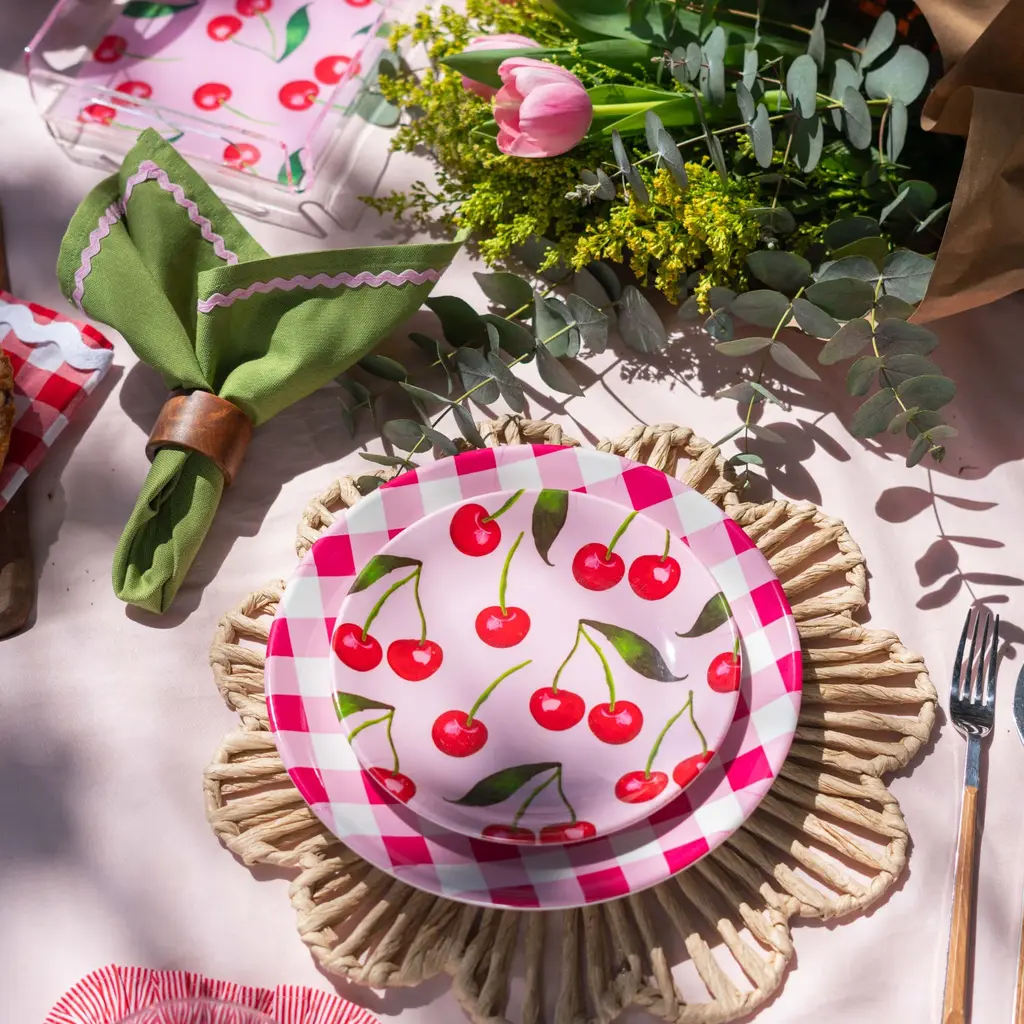 Immerse your tables in the delightful charm of picnic patterns, drawing inspiration from the cheerful allure of cherries and the zesty vibrancy of lemons. Elevate your summer gatherings with this collection, bringing a burst of freshness and joy to every table setting. Enjoy the season in style with our vibrant and spirited designs.