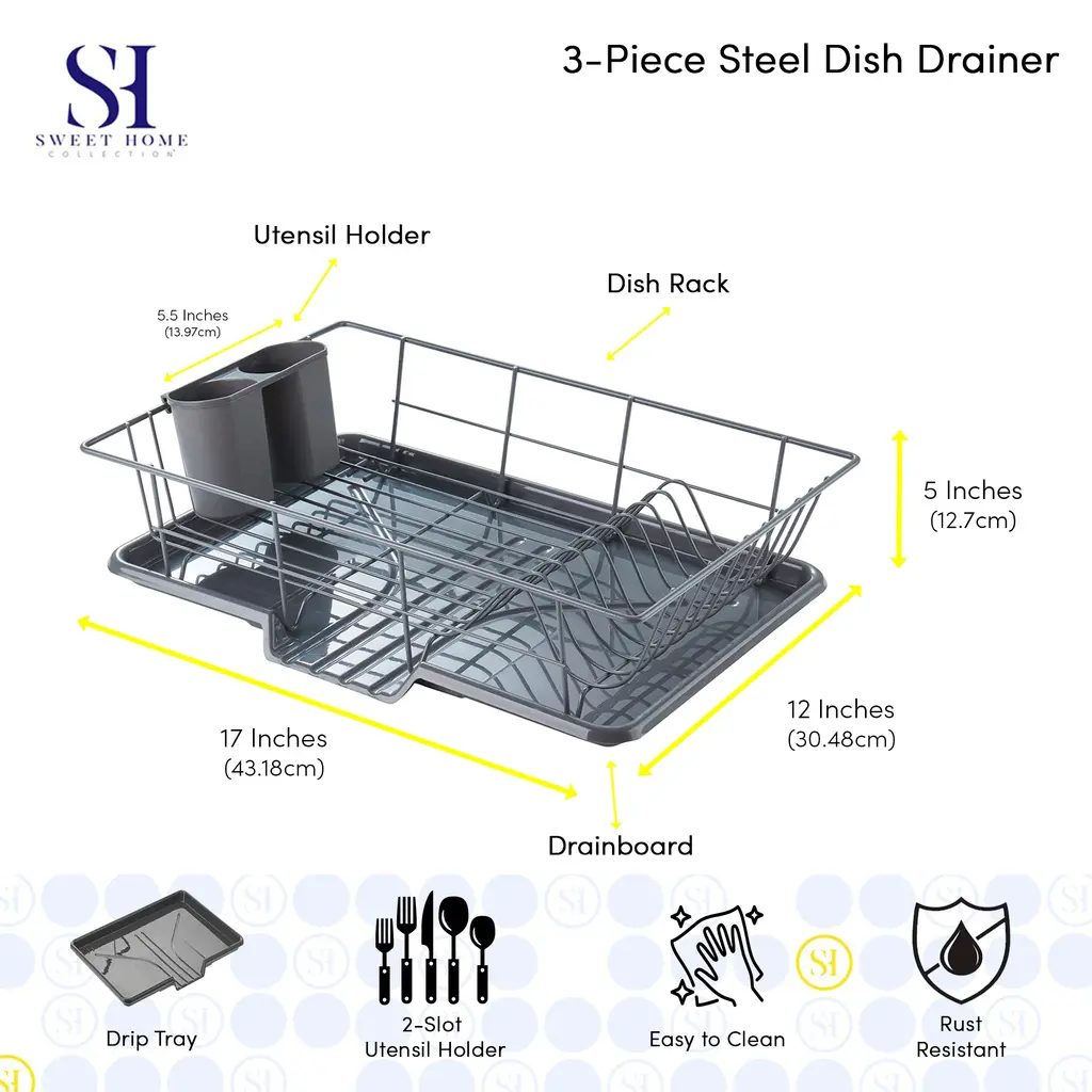 Sweet Home Collection 3-Piece Kitchen Sink Dish Drainer Set - Gray