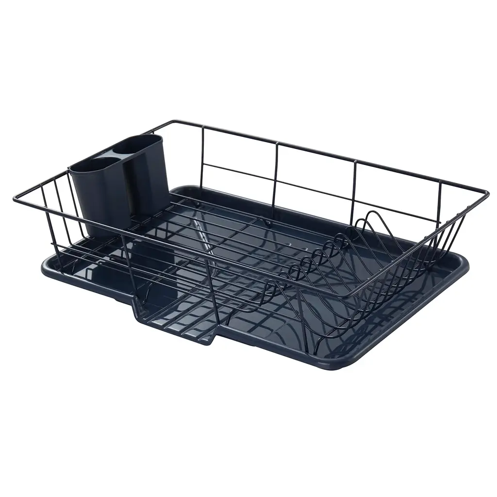 Sweet Home Collection 3-Piece Kitchen Sink Dish Drainer Set - Navy