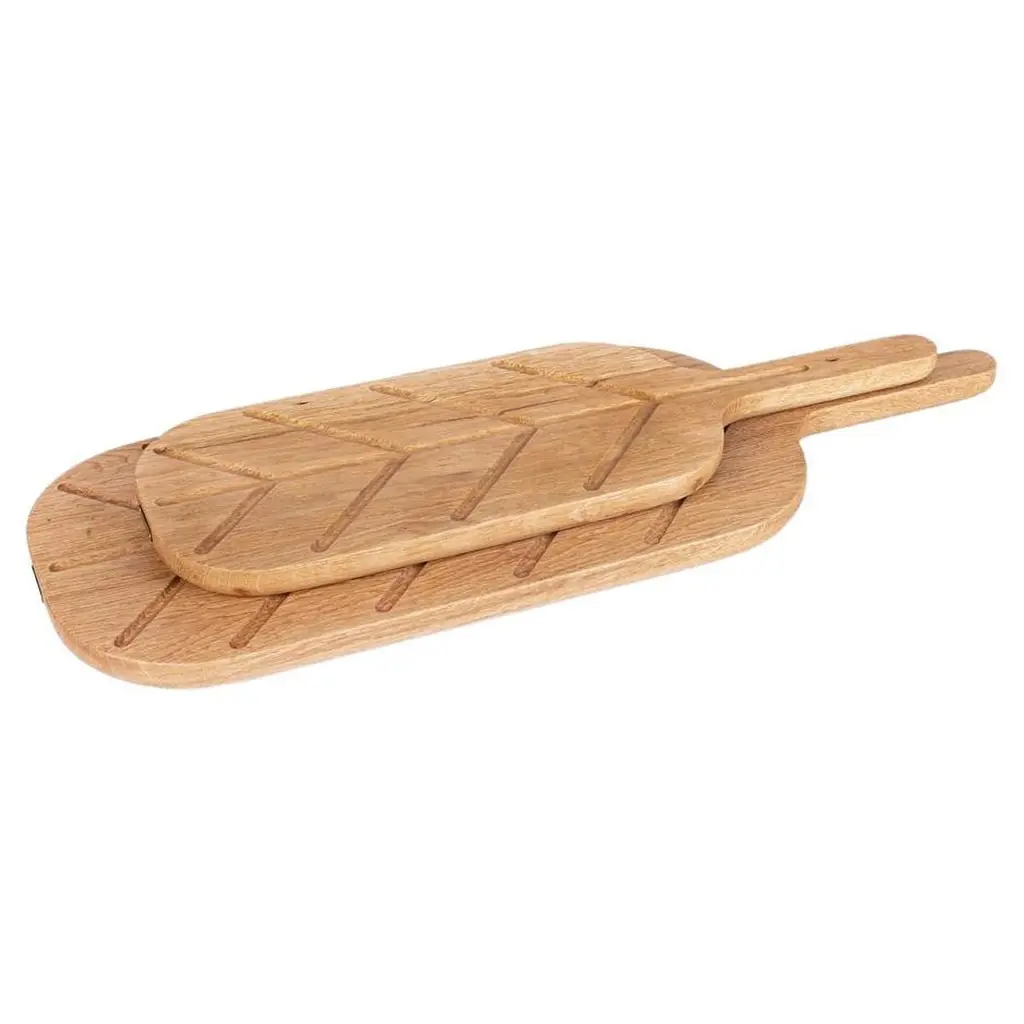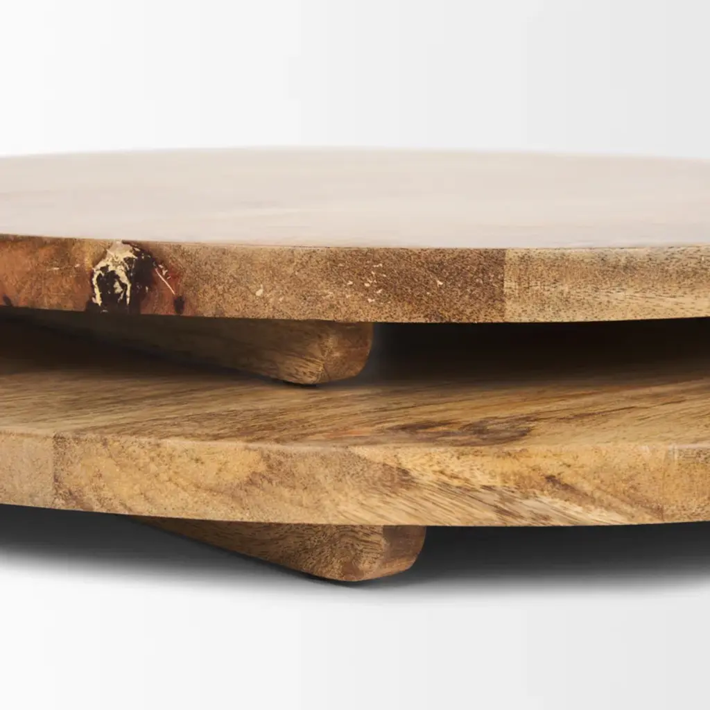 Karana consists of two round naturally finished, solid mango wood serving boards with handles.