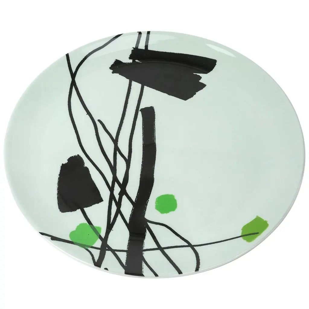 The Swing Dinner Plate Set is one of the designs of the Divertissement collection. It is decorated with floating geometric shapes colored green and red. Each piece is unique and entirely handmade painted, the design may slightly vary. Please, contact the Concierge for further information and options.