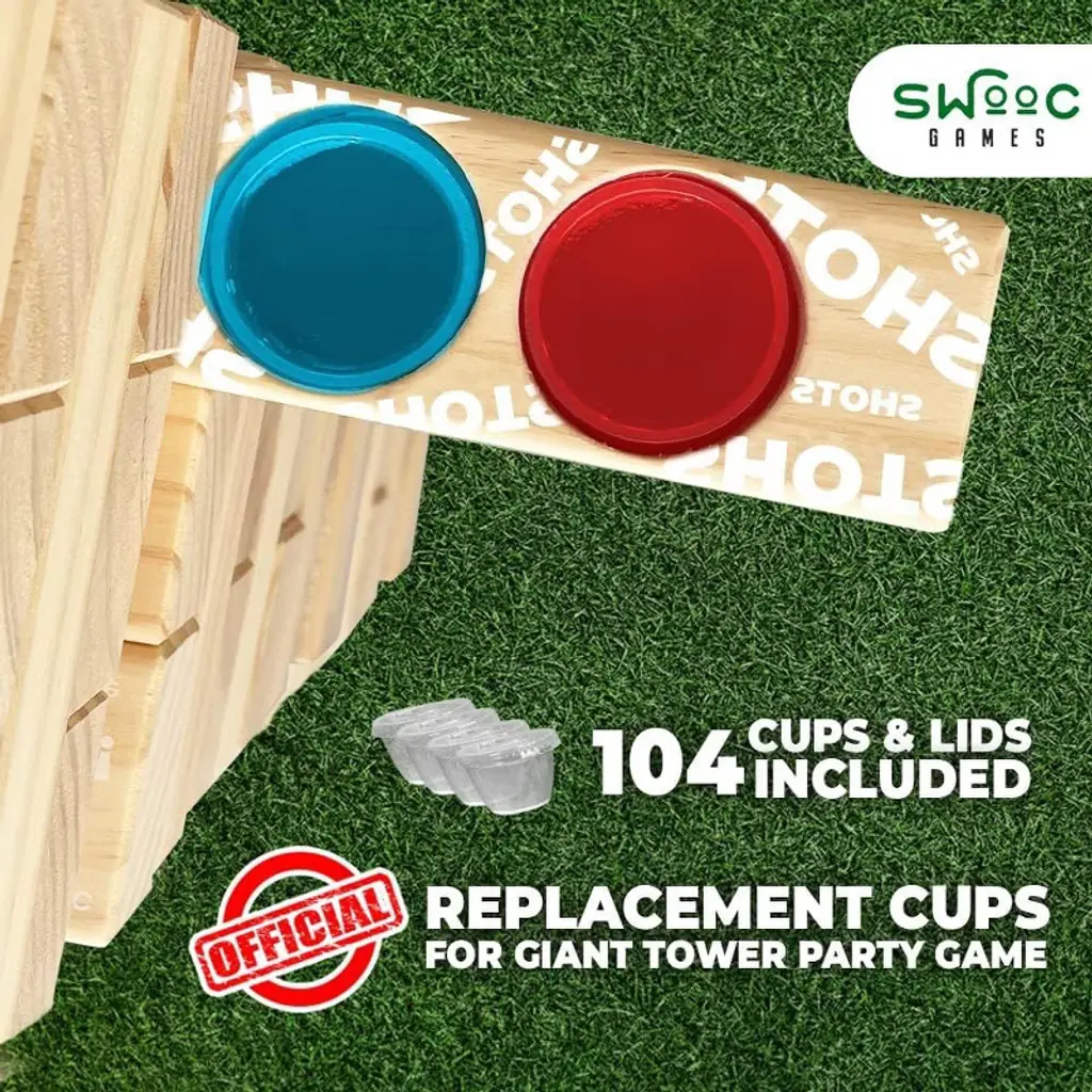 Swooc Games – 105 Extra/replacement Gelatin Shot Cups & Lids For Giant Tower Party Game – Clear Plastic & Leak Proof - Perfect Size For Shot Blocks
