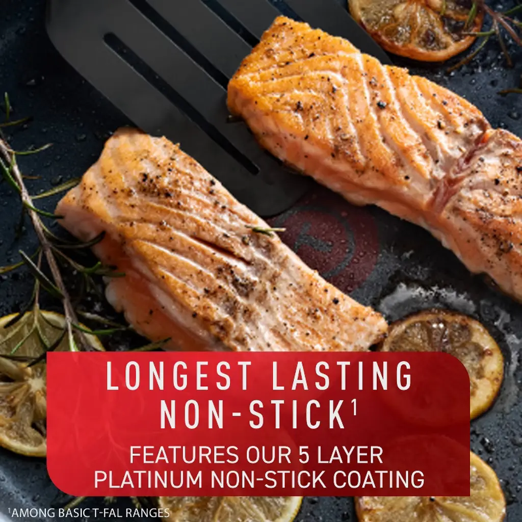 T-fal’s Unlimited Collection is the longest-lasting non-stick in the USA¹. The unmatched durability of the Platinum coating proved 10x more resistant², equal to 12 years of meals, long enough to cook with the kids from preschool to college without your cookware wearing out. The T-fal Unlimited Platinum Nonstick 12" Frypan is perfect for a variety of meals, such as searing steaks and sauteing vegetables. Equipped with a unique Thermo-Spot® heat indicator, you’ll know exactly when your cookware has reached the ideal cooking temperature to bring out your food’s flavor. Its versatile, even heat base prevents hotspots and cooks every bite uniformly, and is compatible with all stovetops, including induction.About Us: For over 60 years, T-fal has been at the forefront of kitchen innovation, starting with the world’s first non-stick cookware. Our brand was built on the idea of making every day cooking easier, faster, and more enjoyable. From intuitive design to time-saving features, T-fal delivers reliable performance for home cooks who want great results without the hassle. Designed for those who value simplicity and innovation, T-fal helps you cook with ease and confidence, every day.