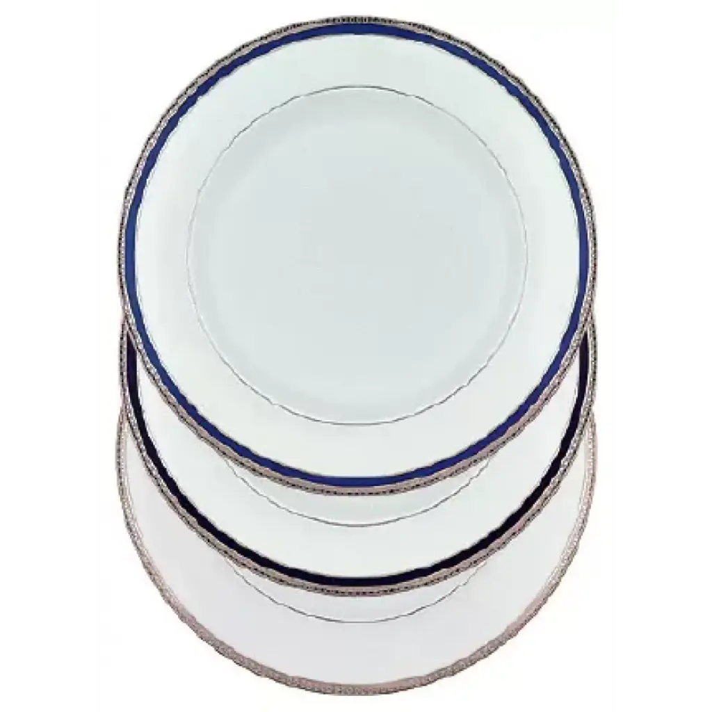 Six midcentury English Cornishware 7" dessert plates, crafted by T.G. Green. The blue banded detail is synonymous with the revered Cornish kitchenware line. Bearing the original maker's mark, this plates are a treasured find for collectors and a charming addition to any kitchen seeking a splash of vintage Cornish blue. 1960s T.G. Green bullseye stamp on underside, the original maker of the Cornish blue banded kitchenware.