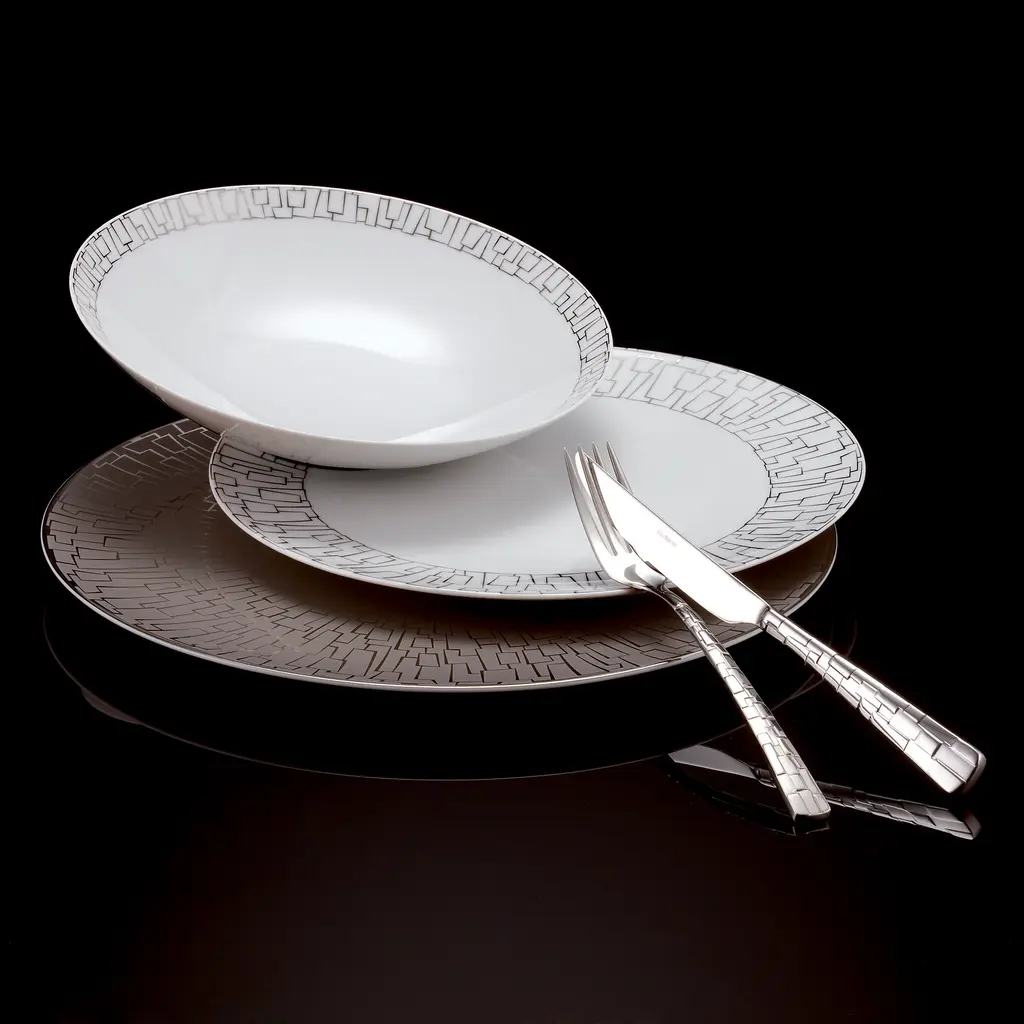 This classic design from Rosenthal now features a new series of graphics which follow the contours of each item, thus emphasizing its shape. The designs take on the theme of structure by playing with the contrast between matte and glossy surfaces- an idea that Walter Gropius himself pursued in his first design.
