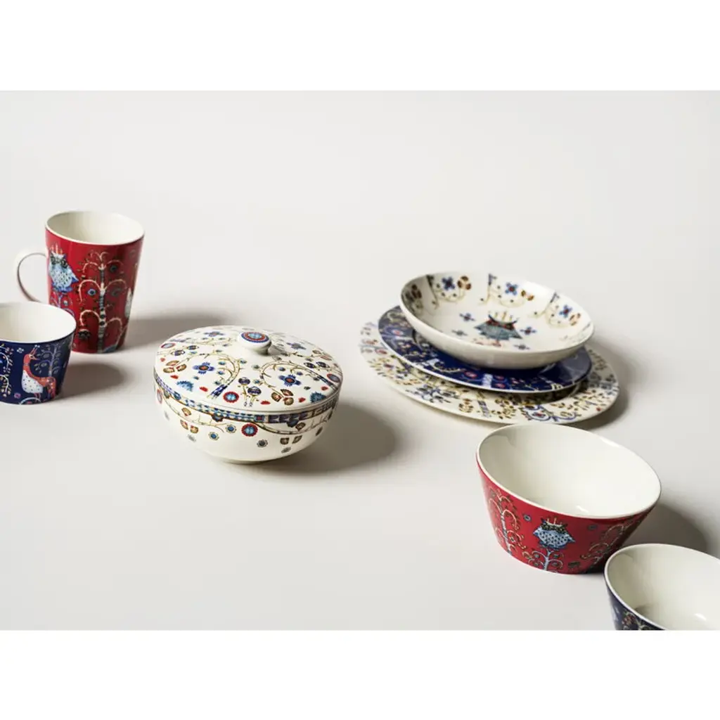 Taika is a collection of tableware and decor items adorned by the fascinating illustrations of Klaus Haapaniemi. The simple form of the textiles, boxes and Heikki Orvola’s dinnerware functions as a perfect canvas for Haapaniemi's alluring characters of folklore and fairy tales. With Iittala’s Taika, Finnish for magic, you can decorate your home with beautiful little stories.