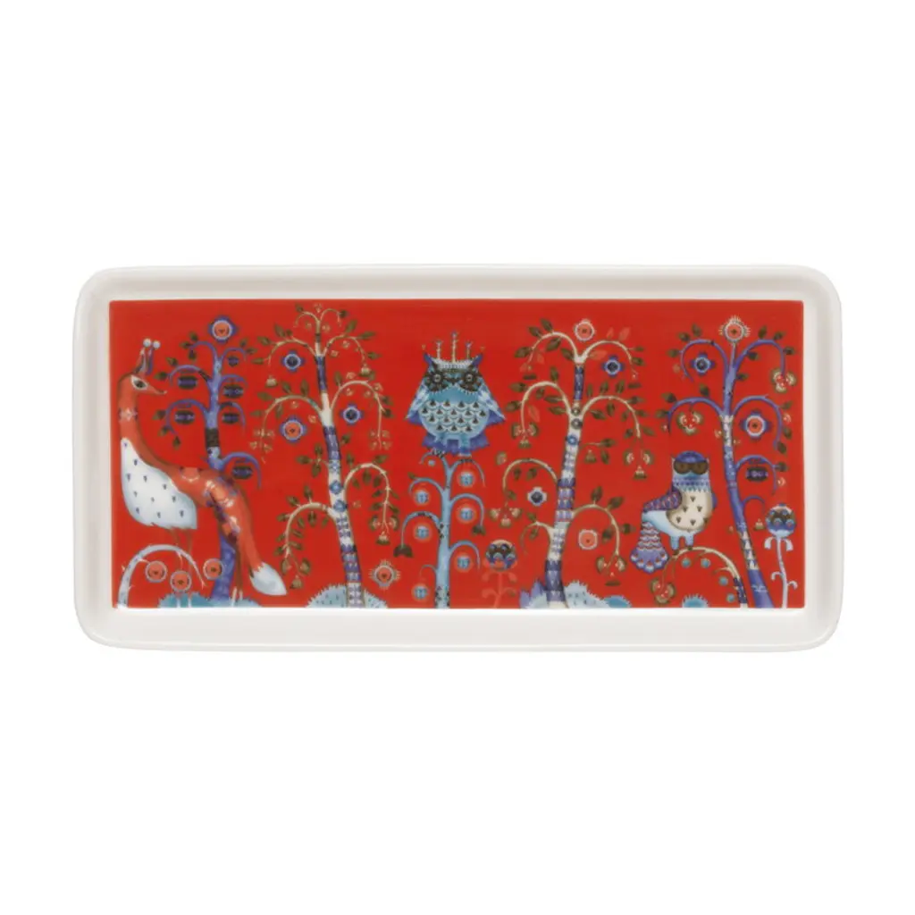 Iittala's Taika small plate is decorated with a wonderful fantasy world, designed by Klaus Haapaniemi. Taika's mystical illustrations spark creativity, inviting you to create your own stories in both tableware and interior design. The versatile rectangular plate is perfect for serving sushi, pastries and snacks, and also makes a charming holder for jewelry and other treasures on your bedside table or in the bathroom.