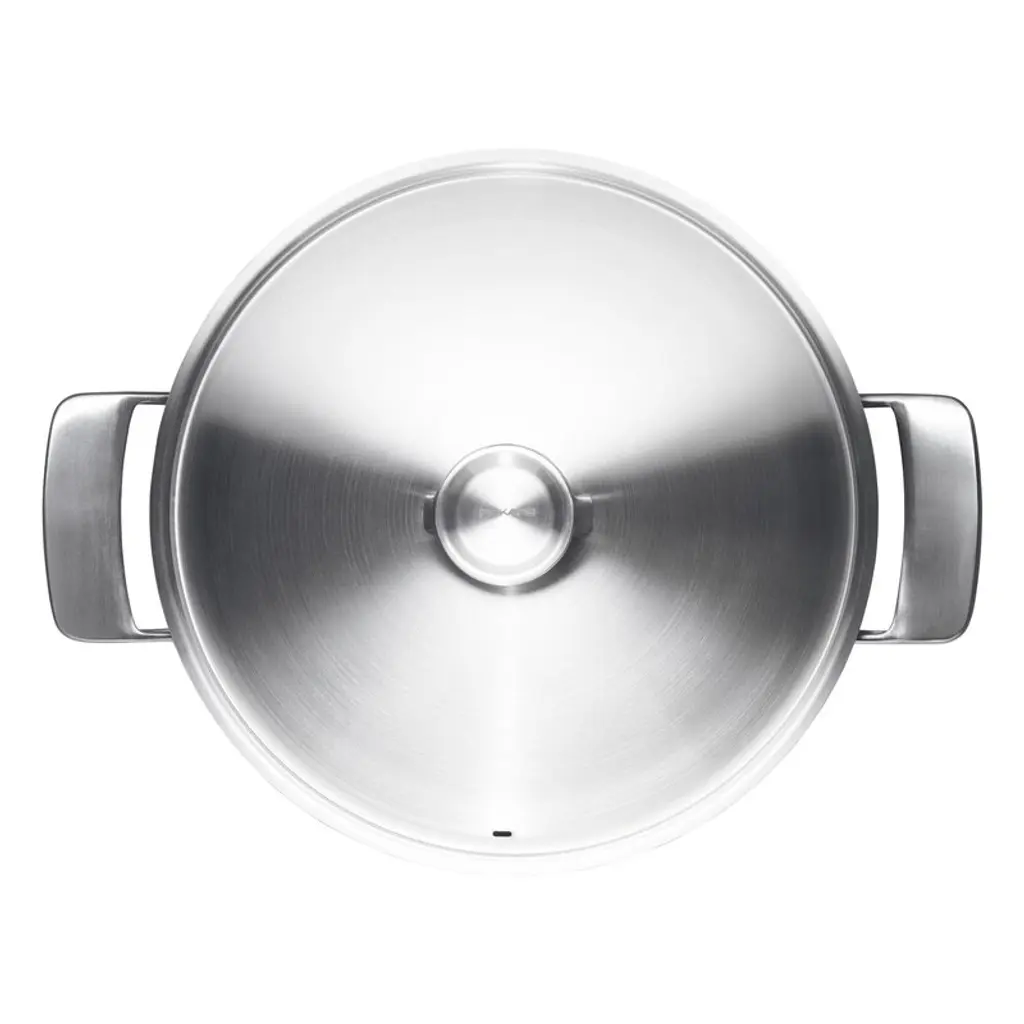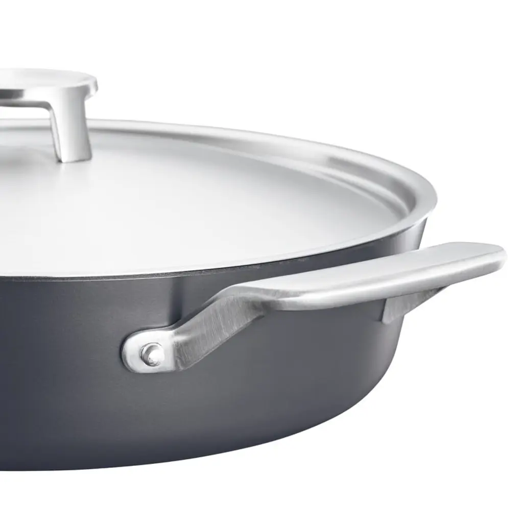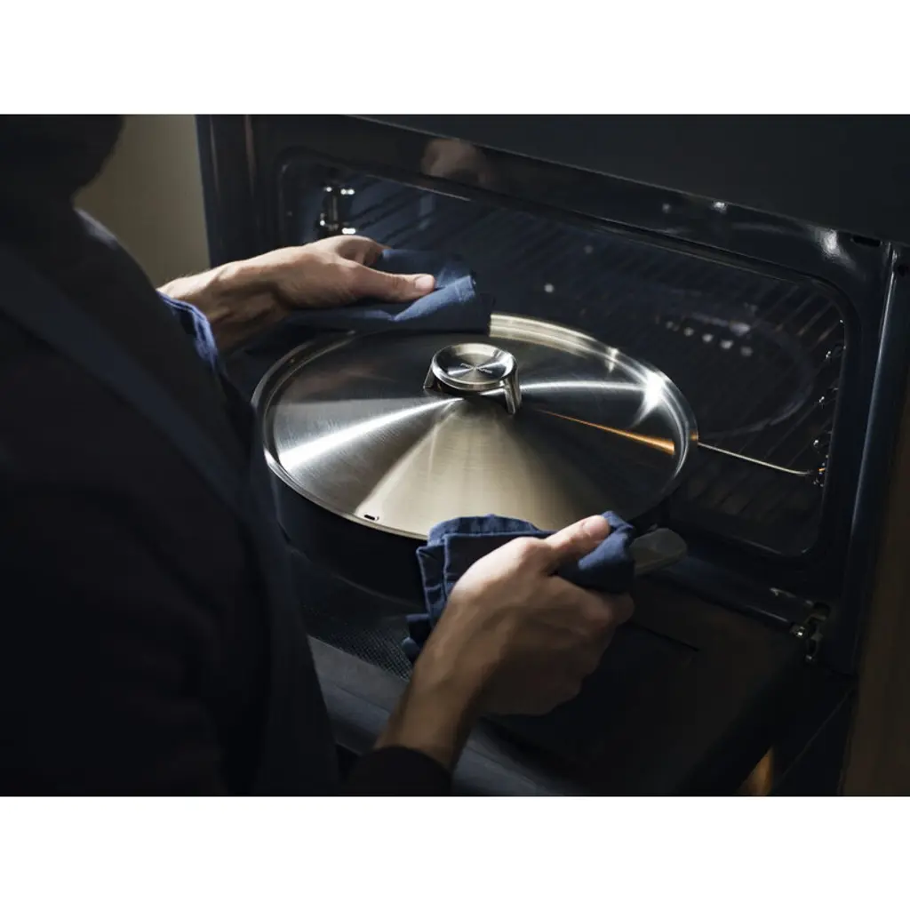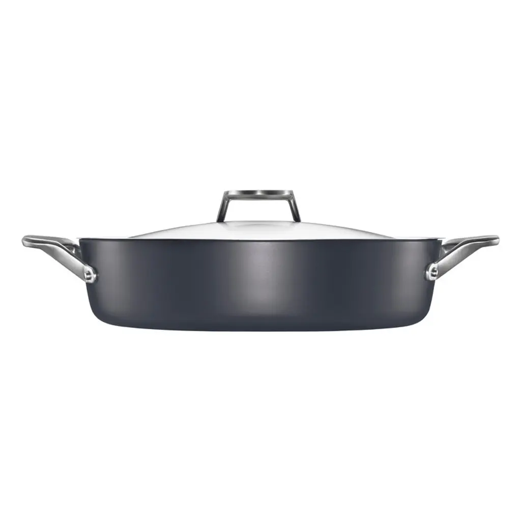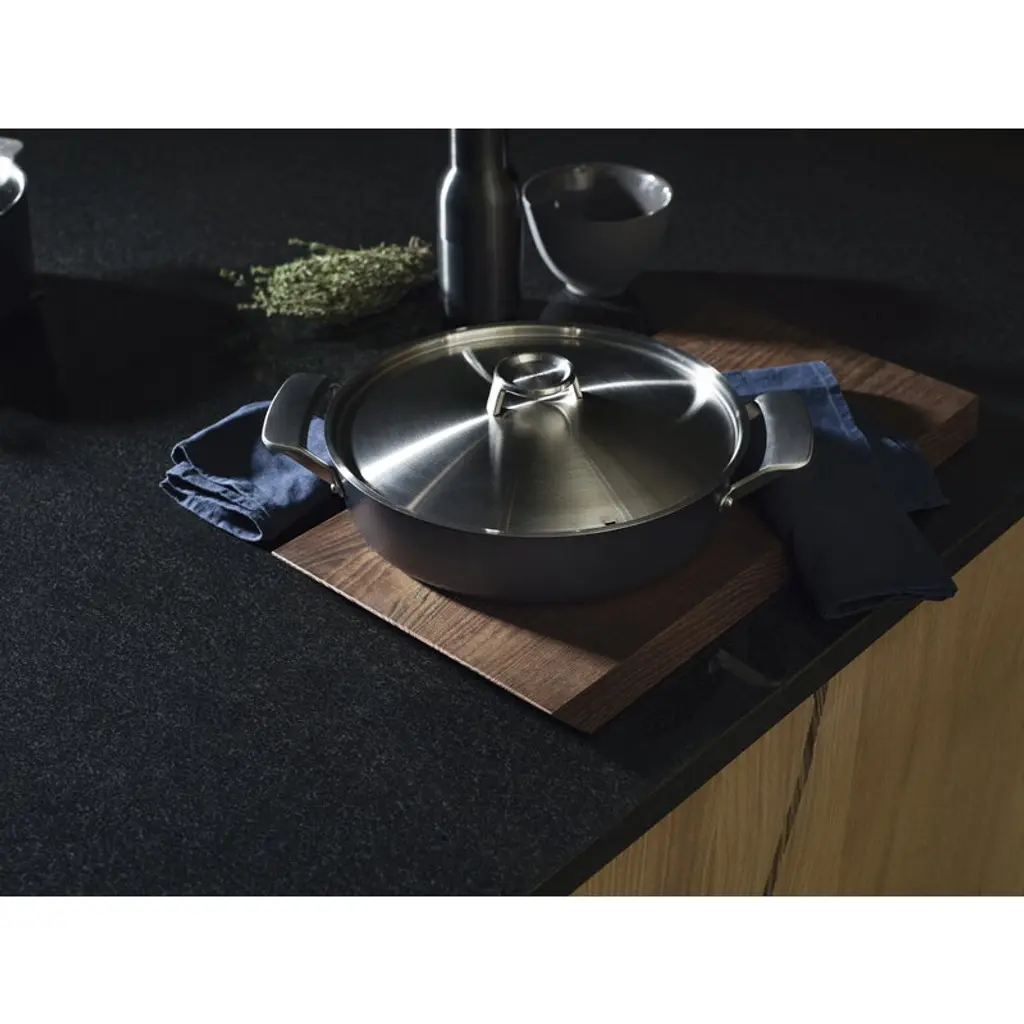 Fiskars' Taiten 11.02 in (28 cm) roasting dish is a sustainable and durable choice for everyday cooking, especially when preparing larger batches of sauces. Made of high-quality recycled aluminum and featuring a lid, the roasting dish has features that will captivate even the most enthusiastic home cooks. Taiten roasting dish features a four-layer coating that ensures your food won't stick to the pan and averts scratches during use in use. The special Optiheat technology prevents the dish from overheating, thus increasing its lifetime. The timeless design is complemented by a sturdy stainless steel handle, providing the chef with a confident and secure grip. Like the other pans and pots in the Taiten collection, the roasting dish can withstand temperatures up to 240°C and is suitable for use on all hobs and in the oven.