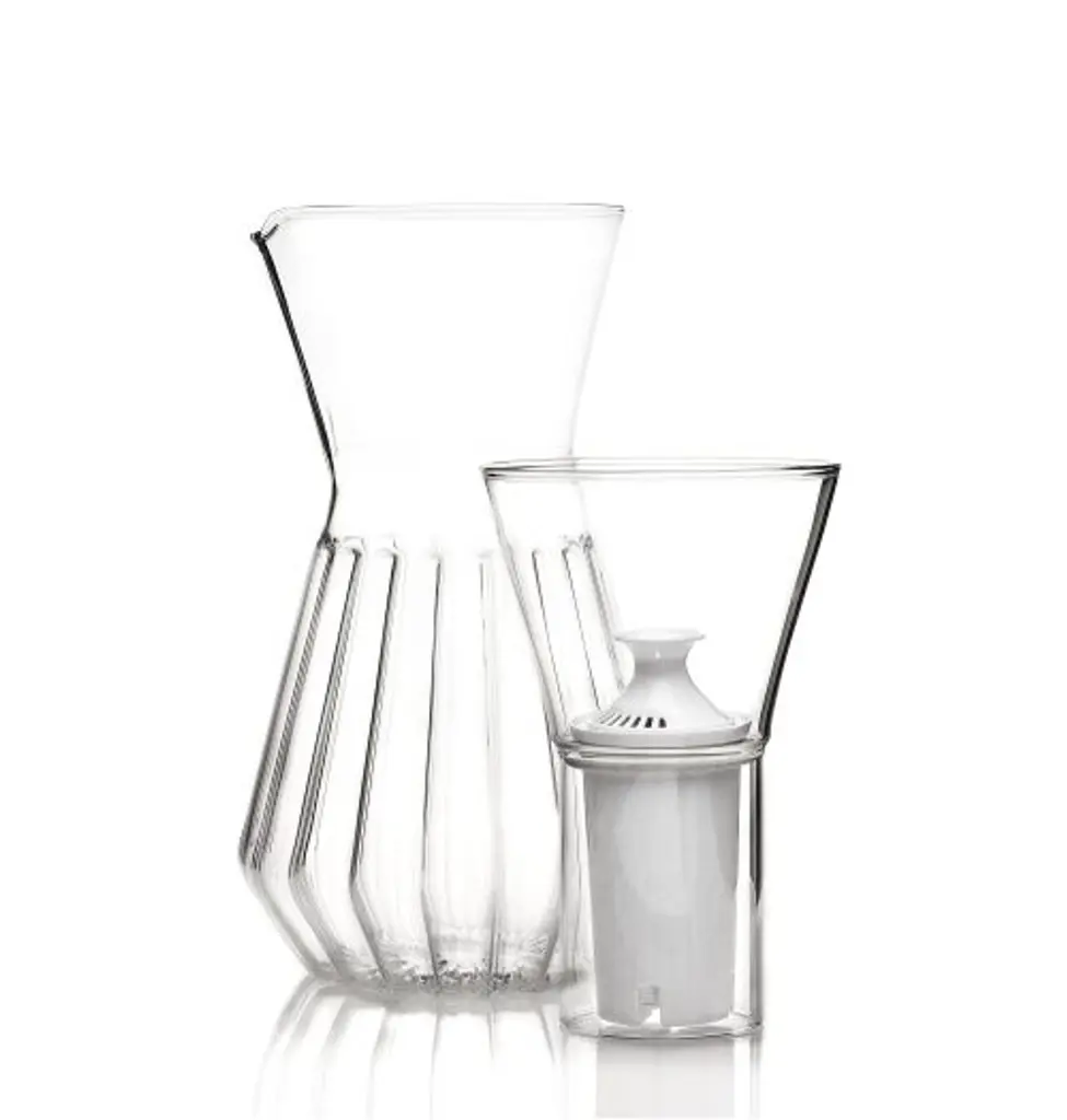 Featuring two types of glass, the Fluted Talise carafe pays homage to traditional craftsmanship via contemporary design. Created by Felicia Ferrone, the Talise collection offers the perfect blend of form and function. The Fluted Talise carafe can be used as a water carafe or as a decanter – without the included funnel. Crafted without the use of molds from the finest quality borosilicate glass, the carafe is made entirely by hand by master glassblowers. Perfect for water as well as non-alcoholic or alcoholic drinks, the Fluted Talise carafe has a capacity of 84 fl oz without the funnel and 50 fl oz with the funnel. This products works with Brita or Brita-style water filters, not included.