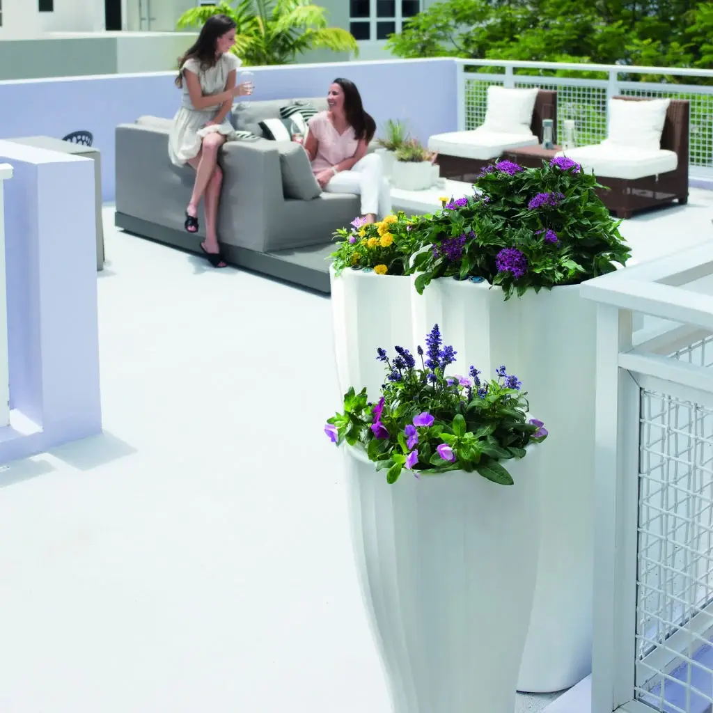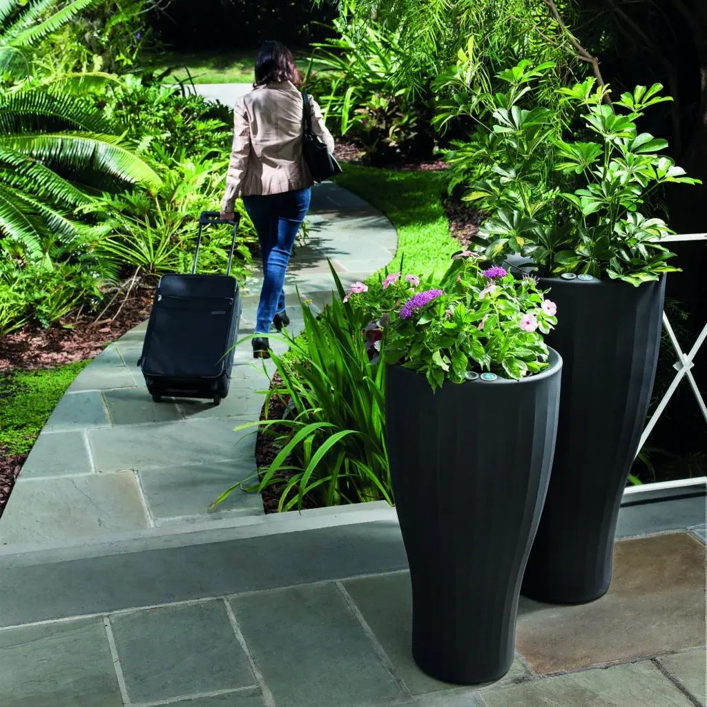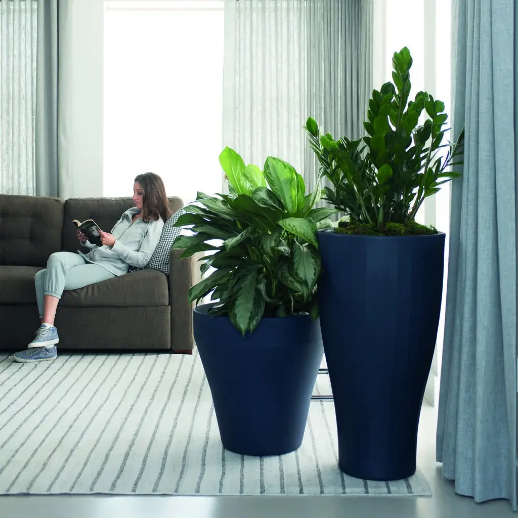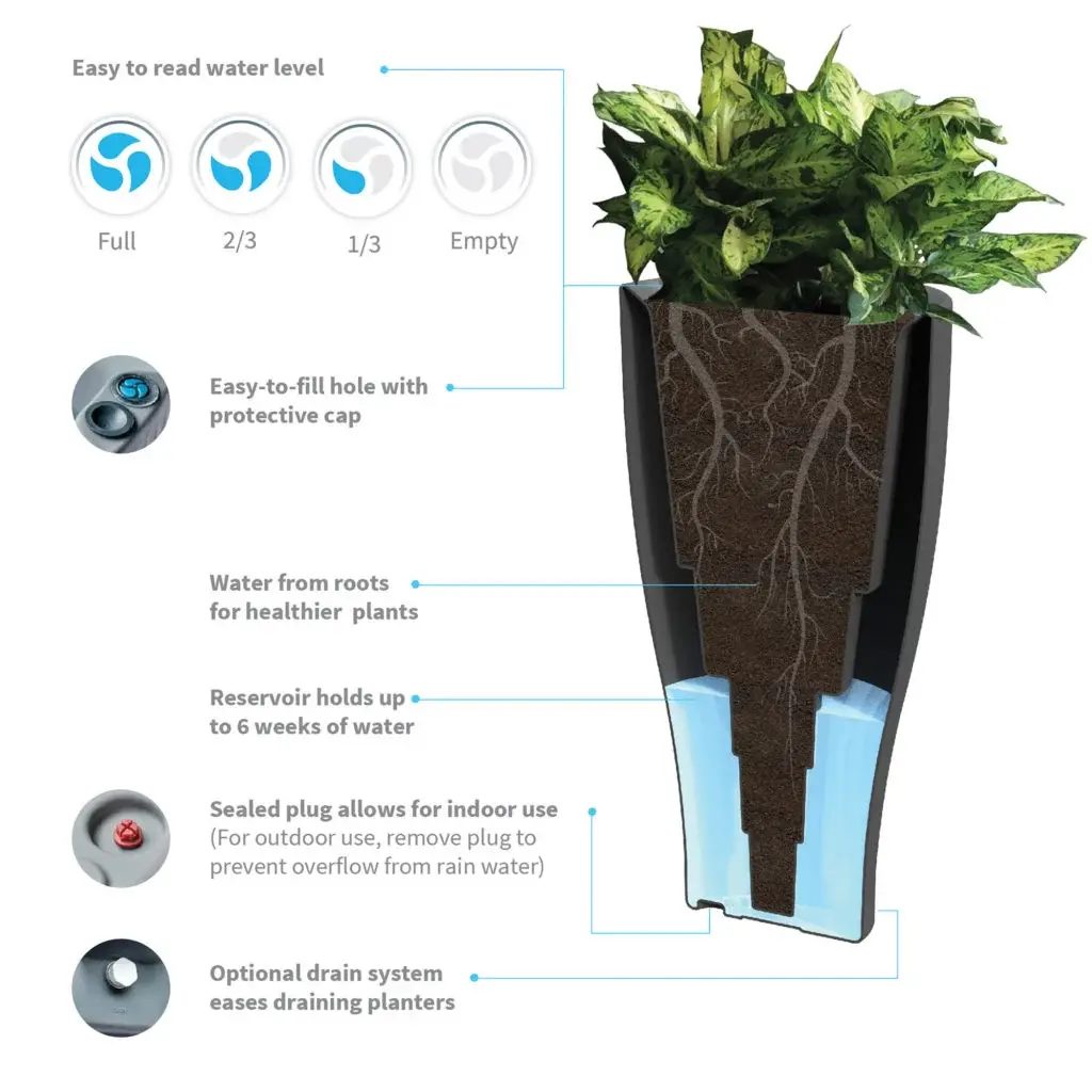 A new refined statement to traditional urns, the cup planters have a unique silhouette and the convenience of our TruDrop One self-watering system. With clean lines and trending colors, take your indoor and outdoor landscaping to the next level with these tall planters. The built-in reservoir provides a steady and timely supply of water to plants. It is perfect for a healthy plant growth and stress-free maintenance. Trudrop self-watering planters will let you go weeks without watering. An easy to read water level indicator takes the guesswork out of watering, while the large water reservoir lets your roots take the water they need for successful gardening in containers.