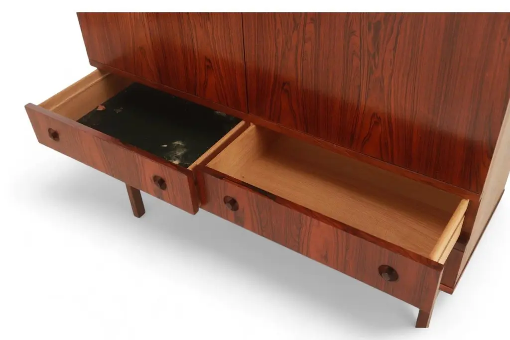Origin: DenmarkDesigner: UnknownManufacturer: UnknownEra: 1960sMaterials: RosewoodMeasurements: 47.25" wide x 17.5" deep x 63.5" tall